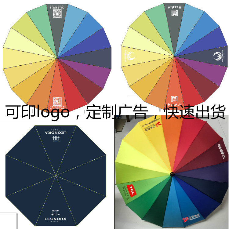 Двойной зонтик с длинной зонтикой 16 кость радужная зонтика Женская чистого цвета зонтик на заказ на открытом воздухе рекламная реклама логотип печать зонтика