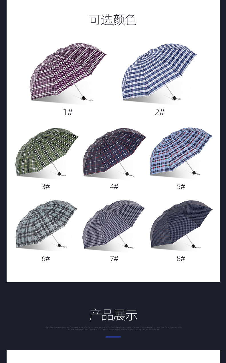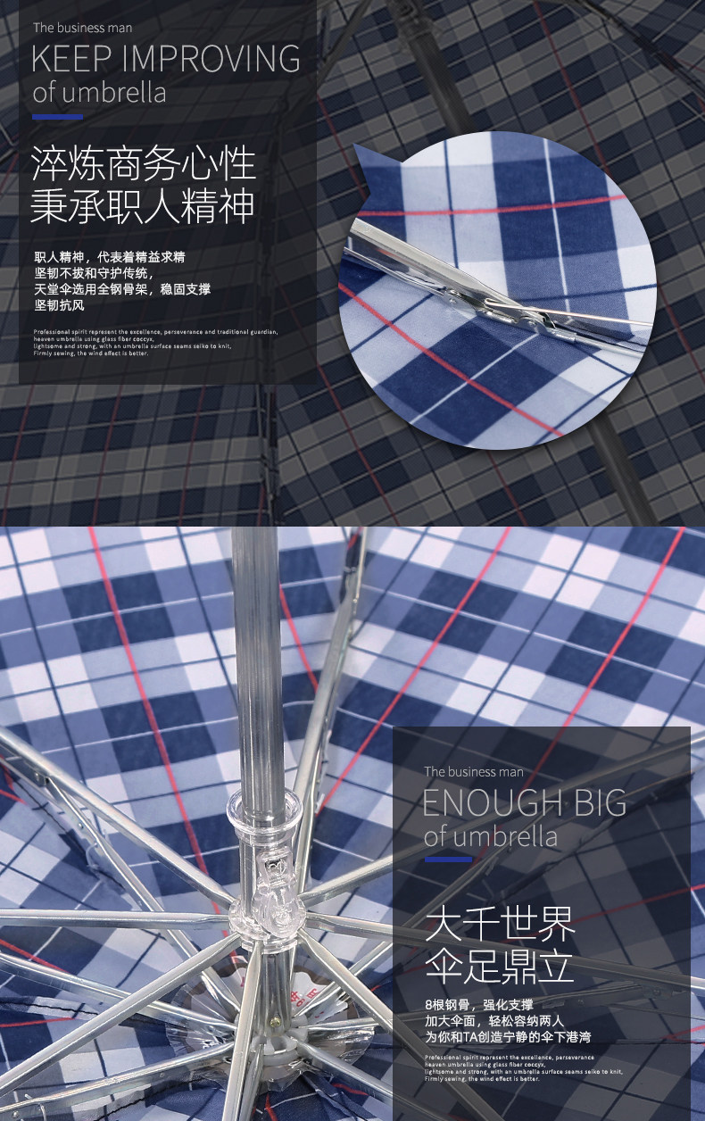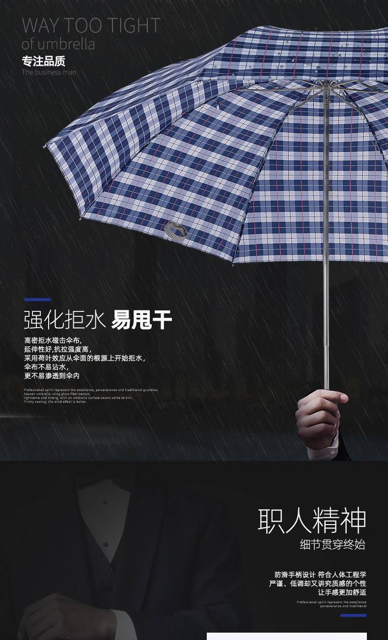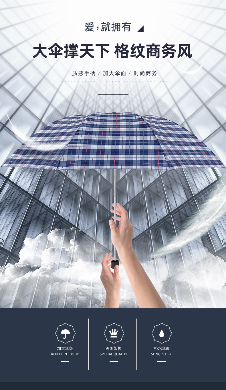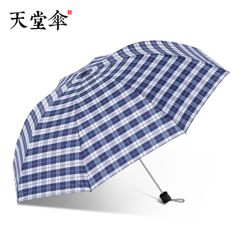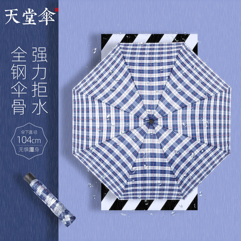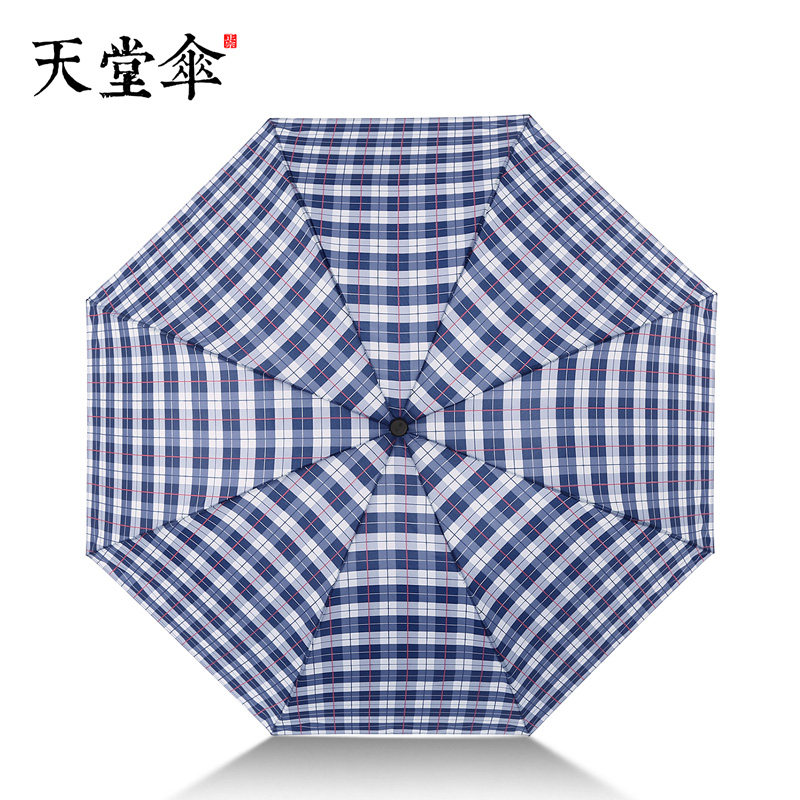 天堂 Зонтик подлинный классический бизнес -клетчатый зонтик складывает все стальные осьминоги мужской солнечный зонтик с двойным использованием Большой зонтик