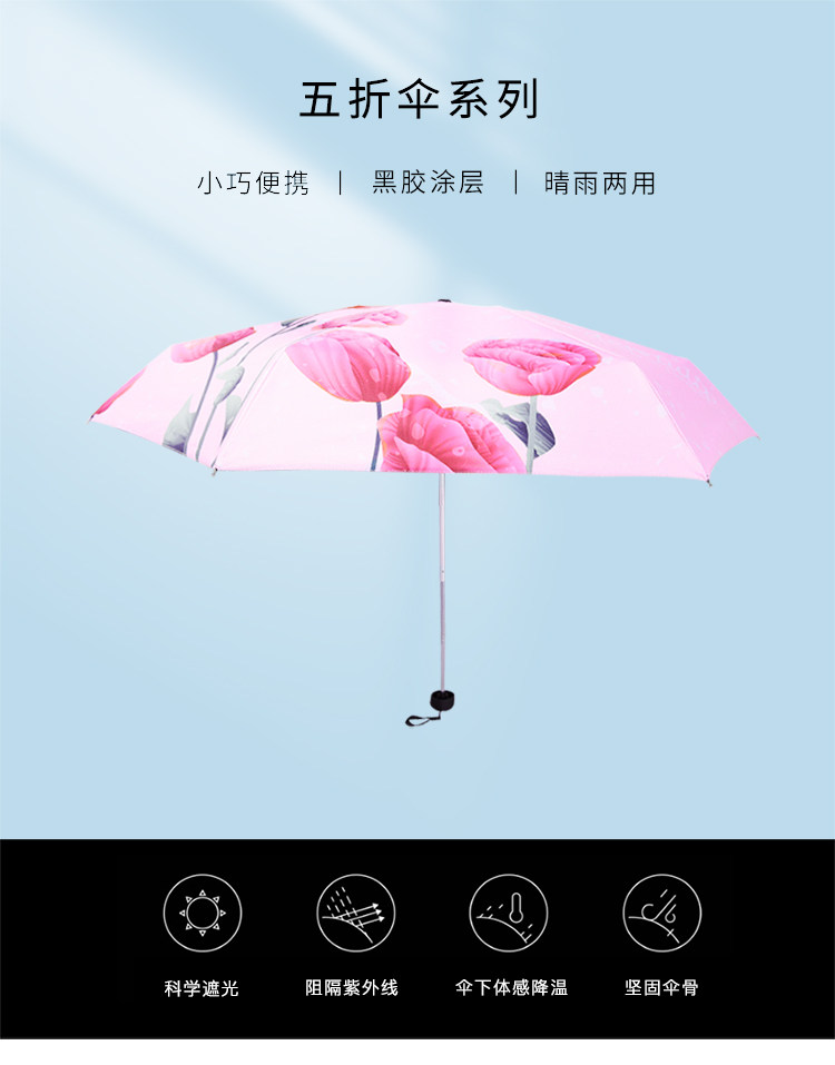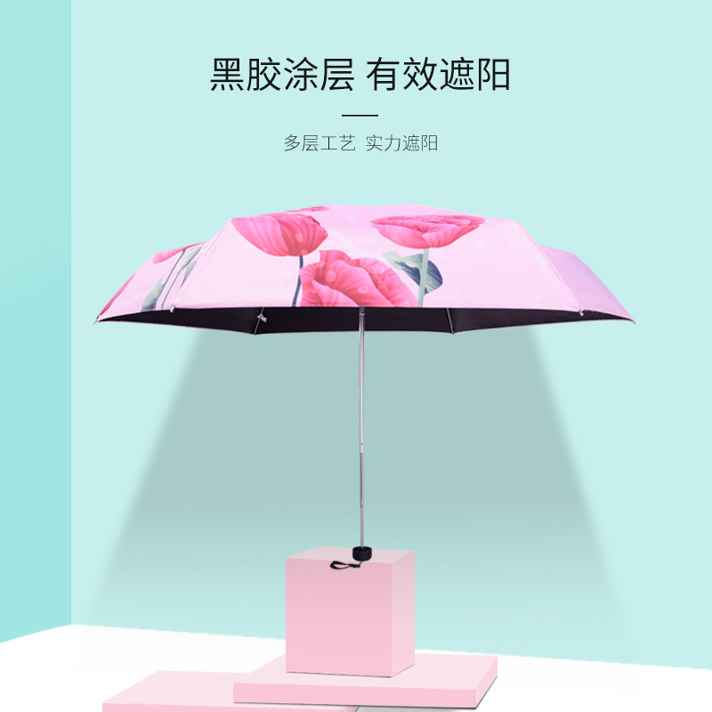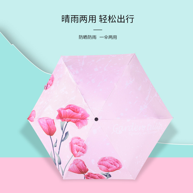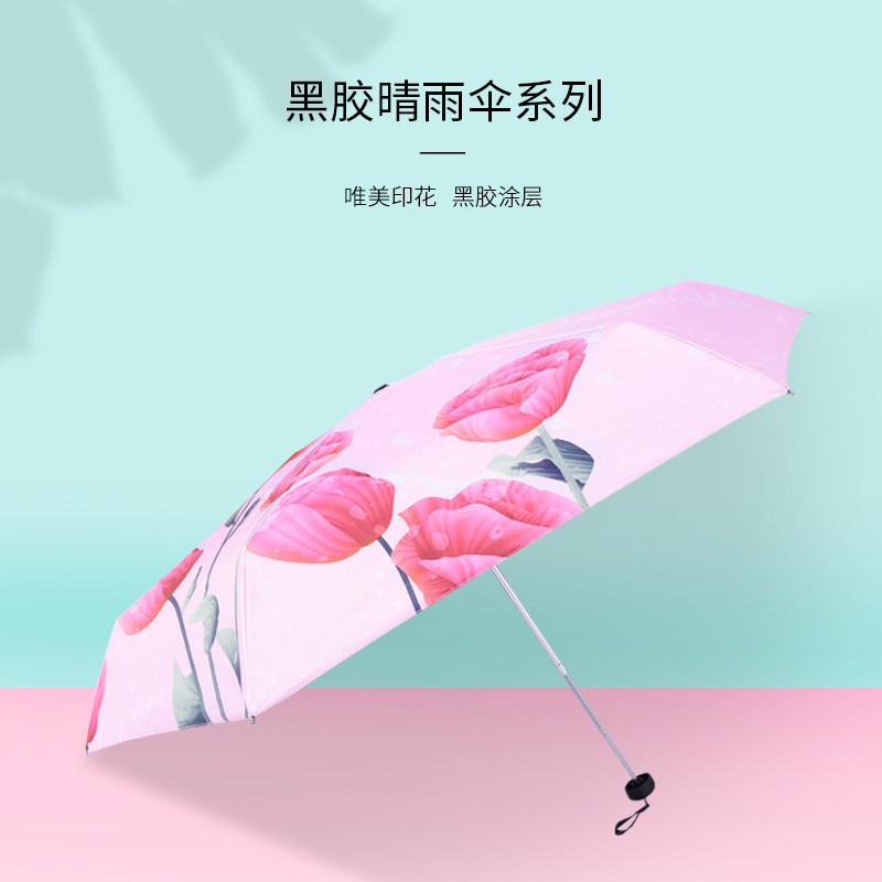 羚羊早安 50 % скидка карманного зонтика красивые цветы печать черного клея и зонтик