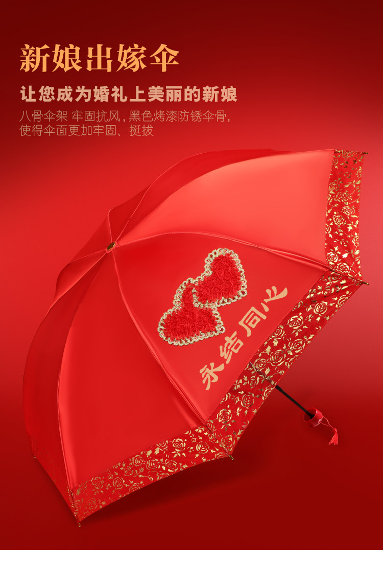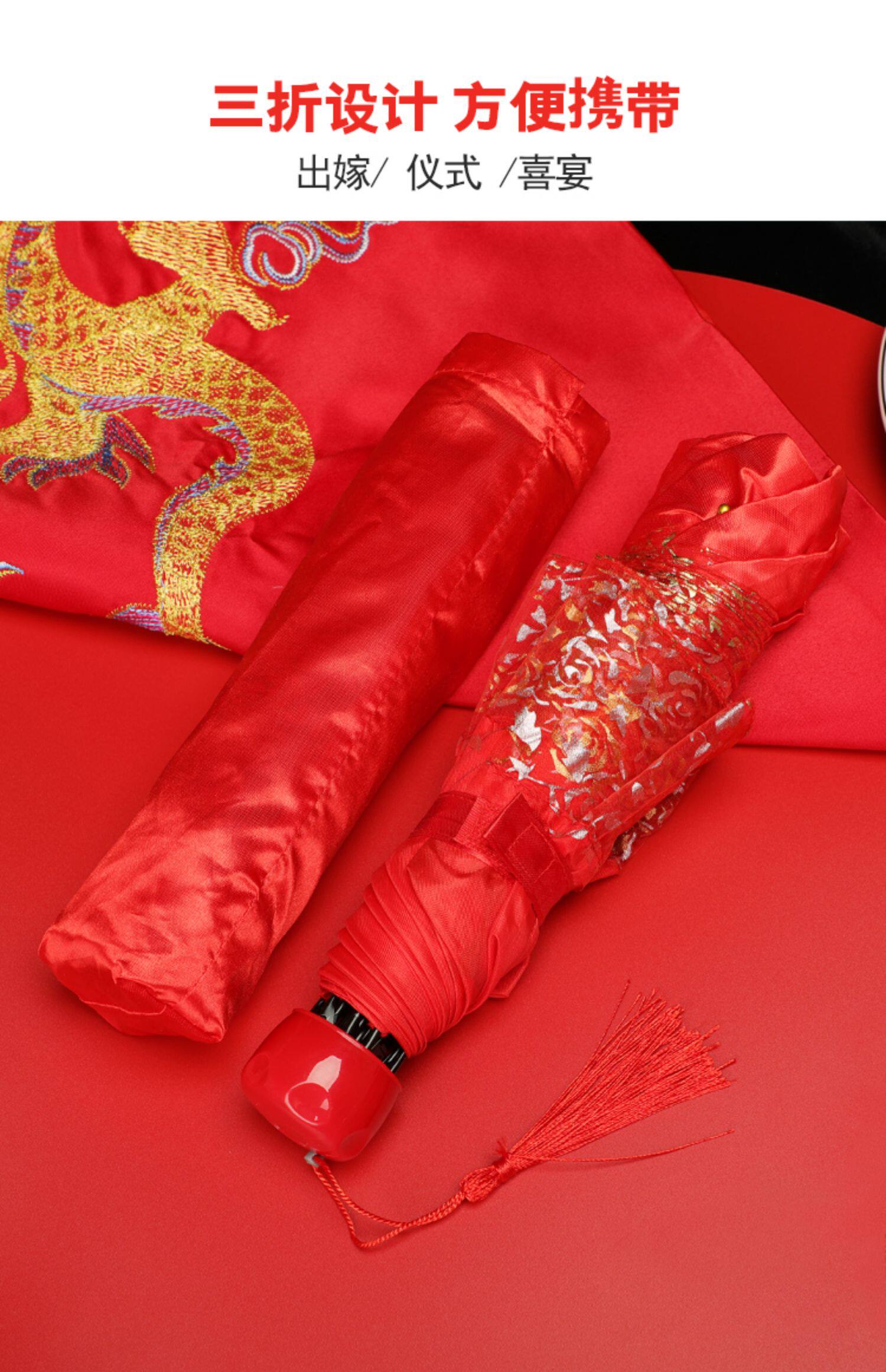 Красный зонтик свадебный складывание свадебного зонтика невесты, чтобы жениться на китайской свадьбе, выходить на улицу, свадебный зонтик, дождь и дождь, два раза