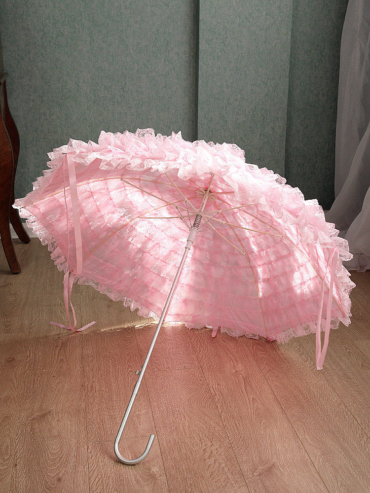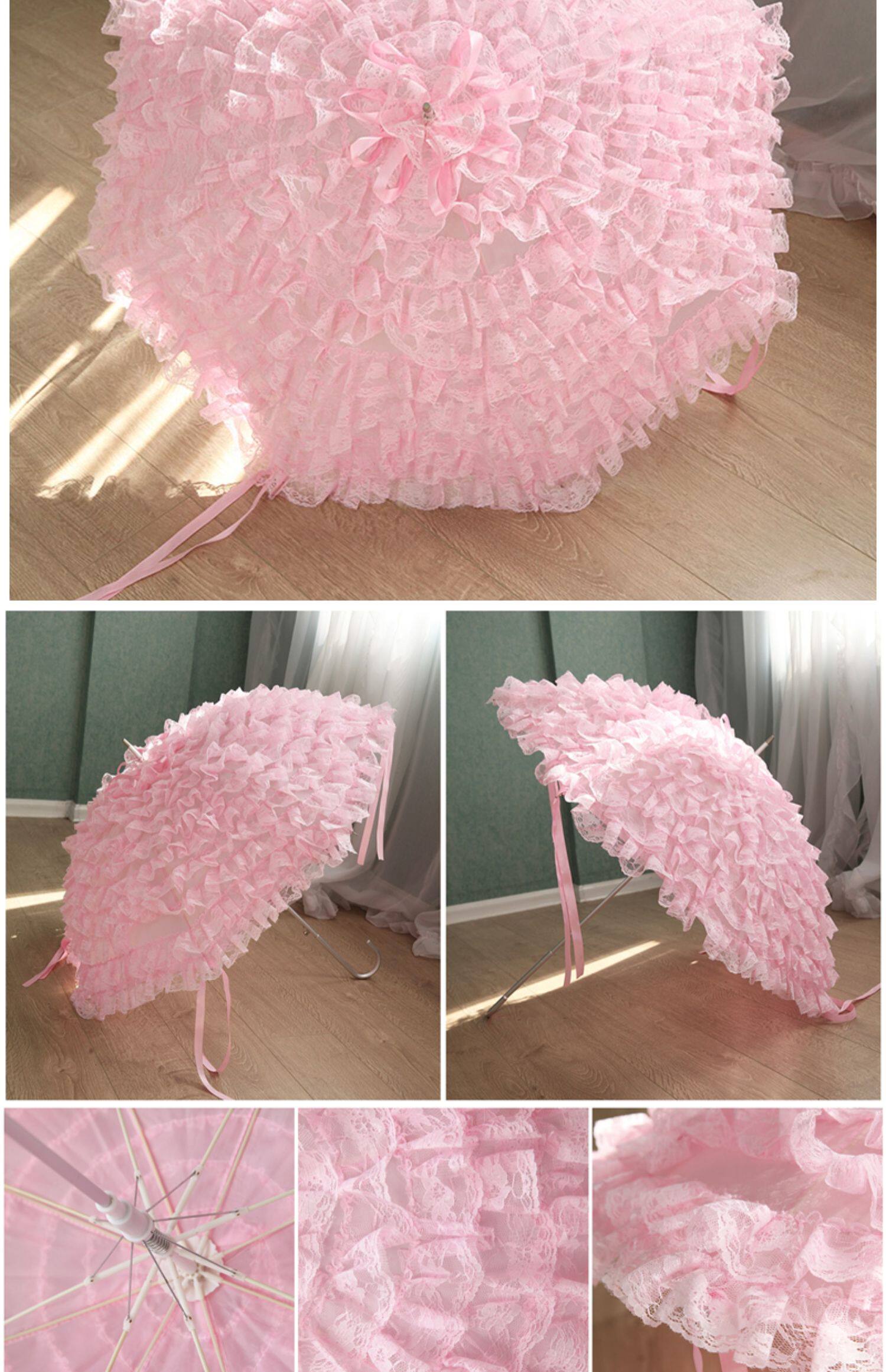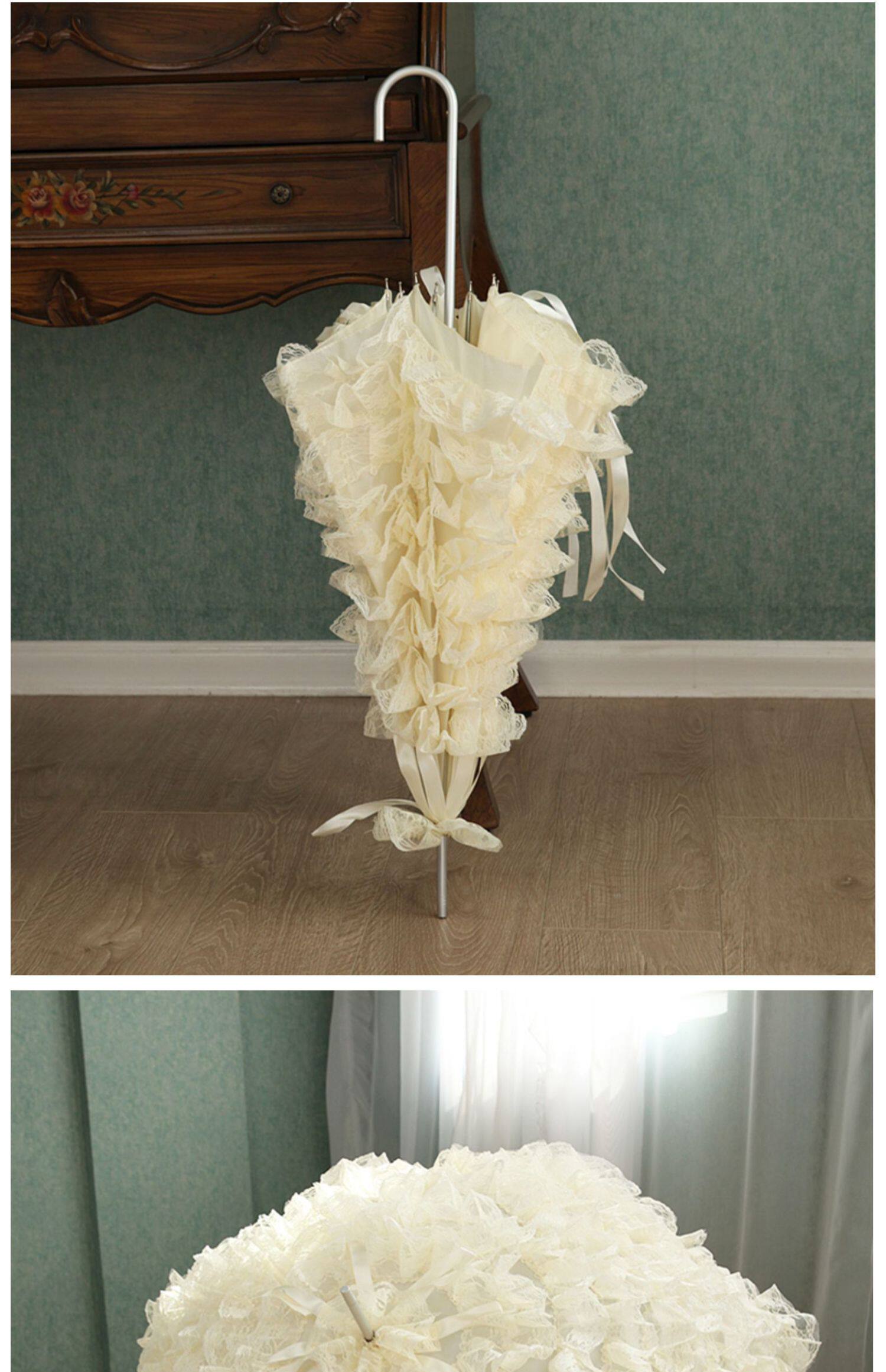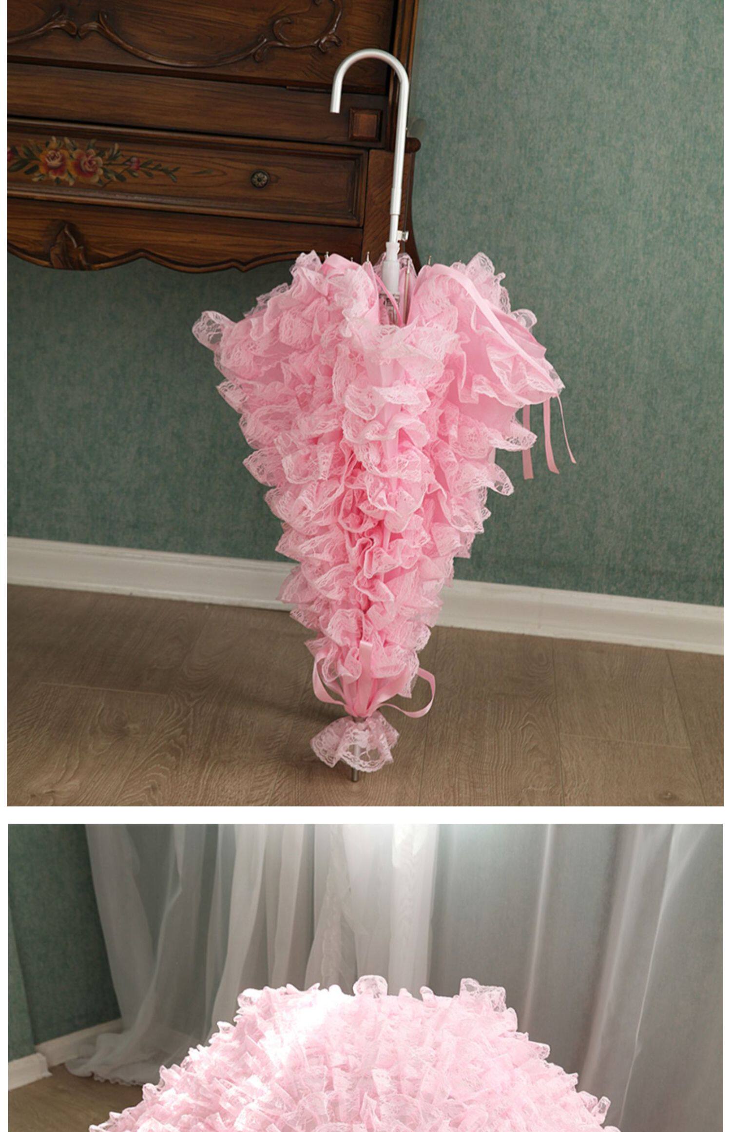 Peixin Double -Layer кружевное зонтик женский европейский стиль ретро -дворец Ветром Арочная ручка Прямая шеста розовая кисточка принцесса длинная ручка зонти