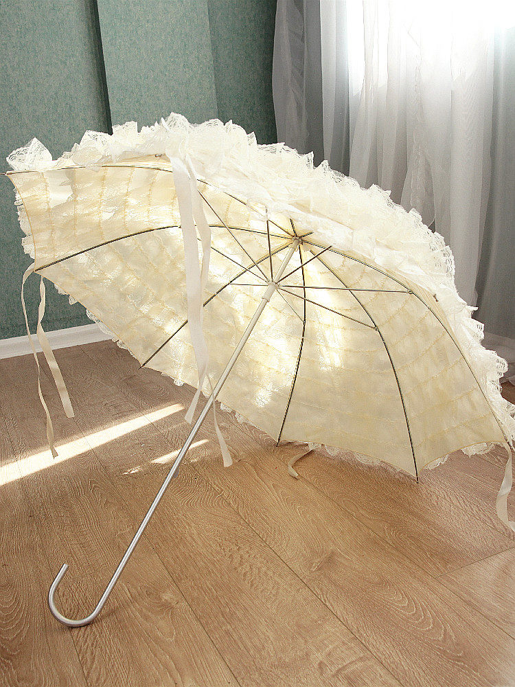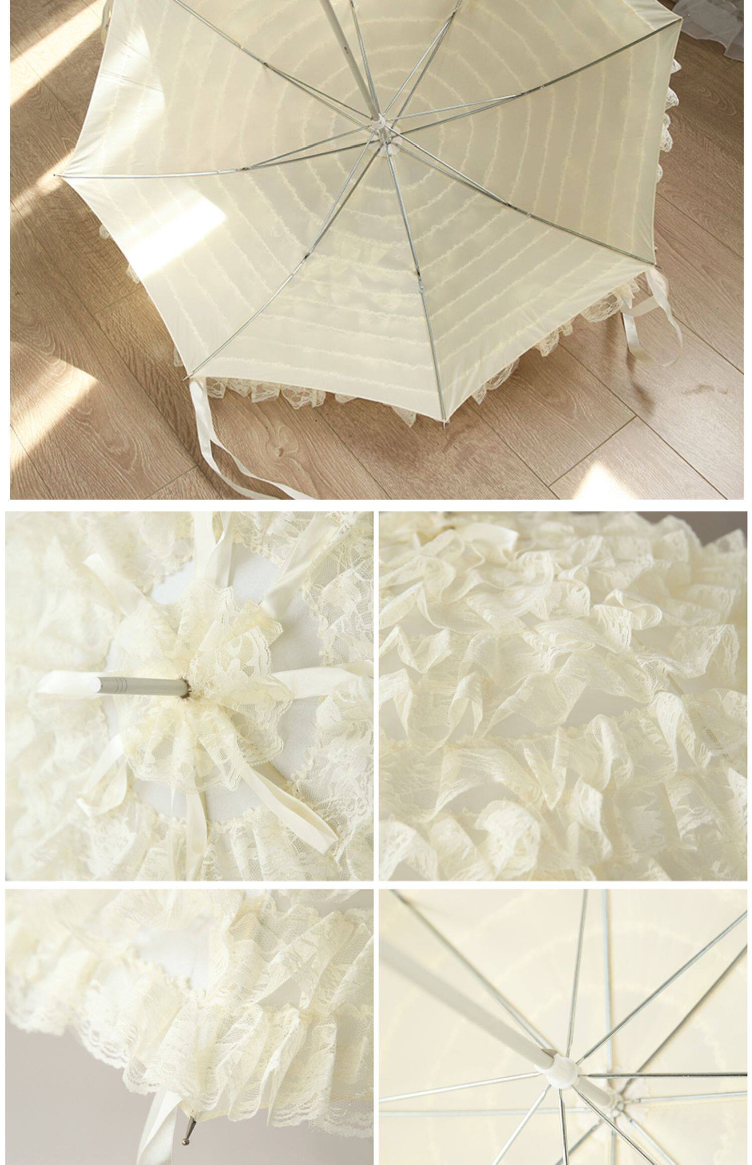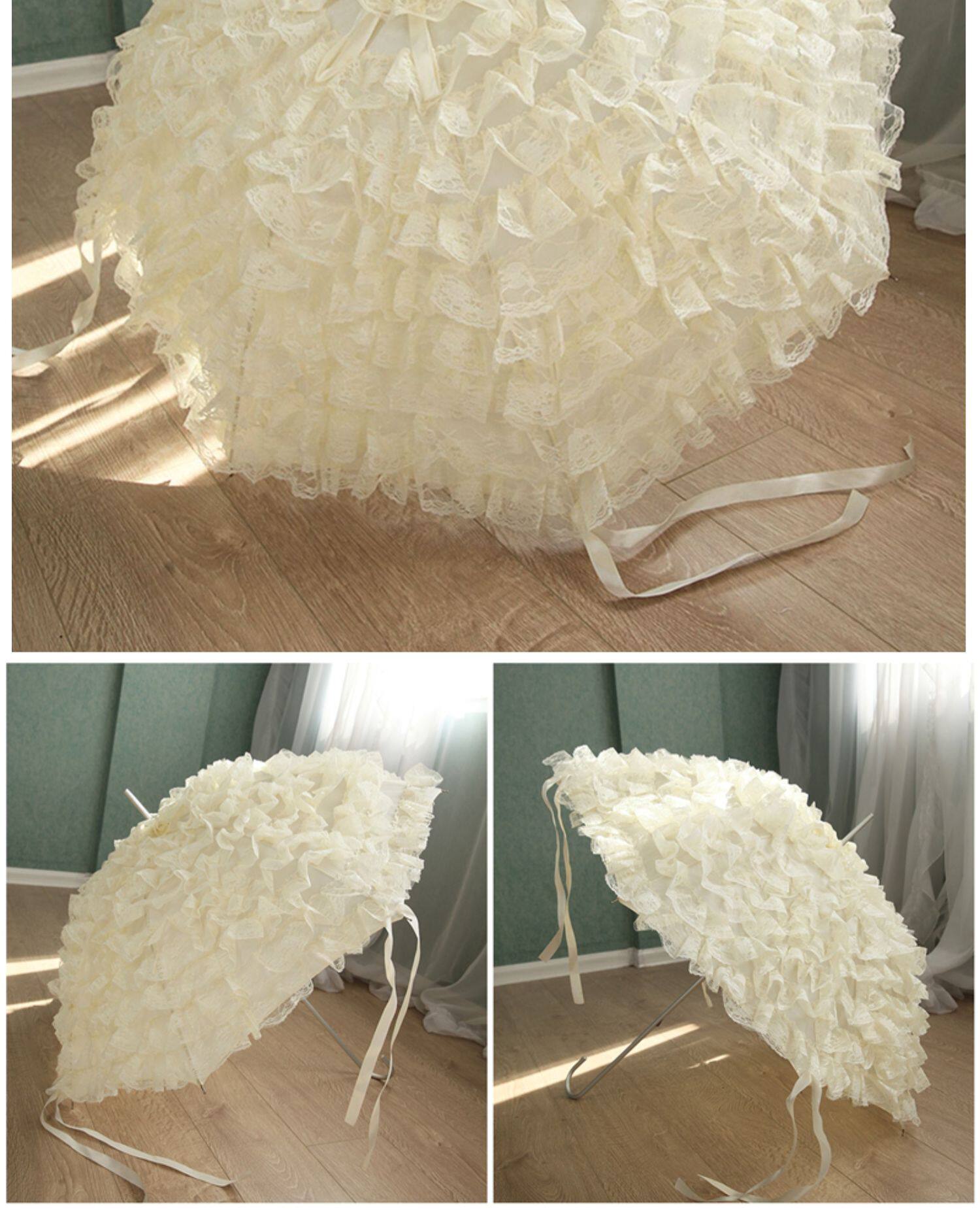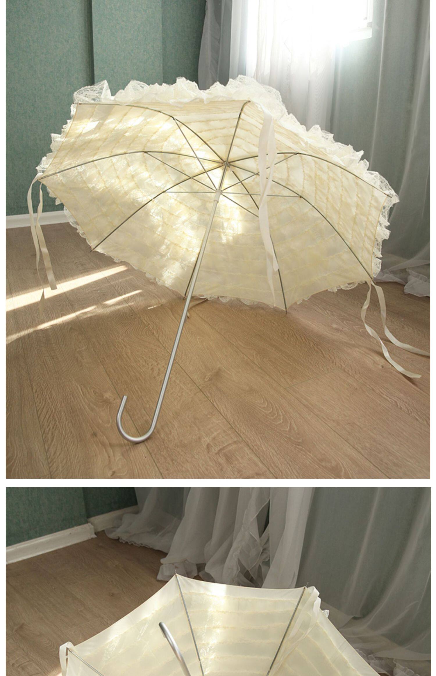 Peixin Double -Layer кружевное зонтик женский европейский стиль ретро -дворец Ветром Арочная ручка Прямая шеста розовая кисточка принцесса длинная ручка зонти