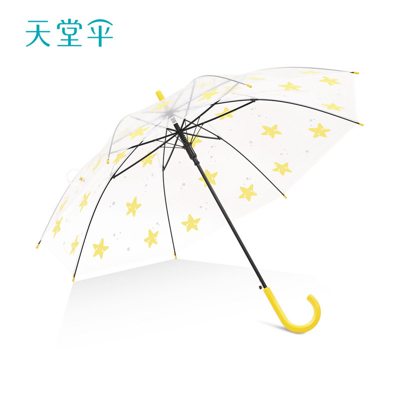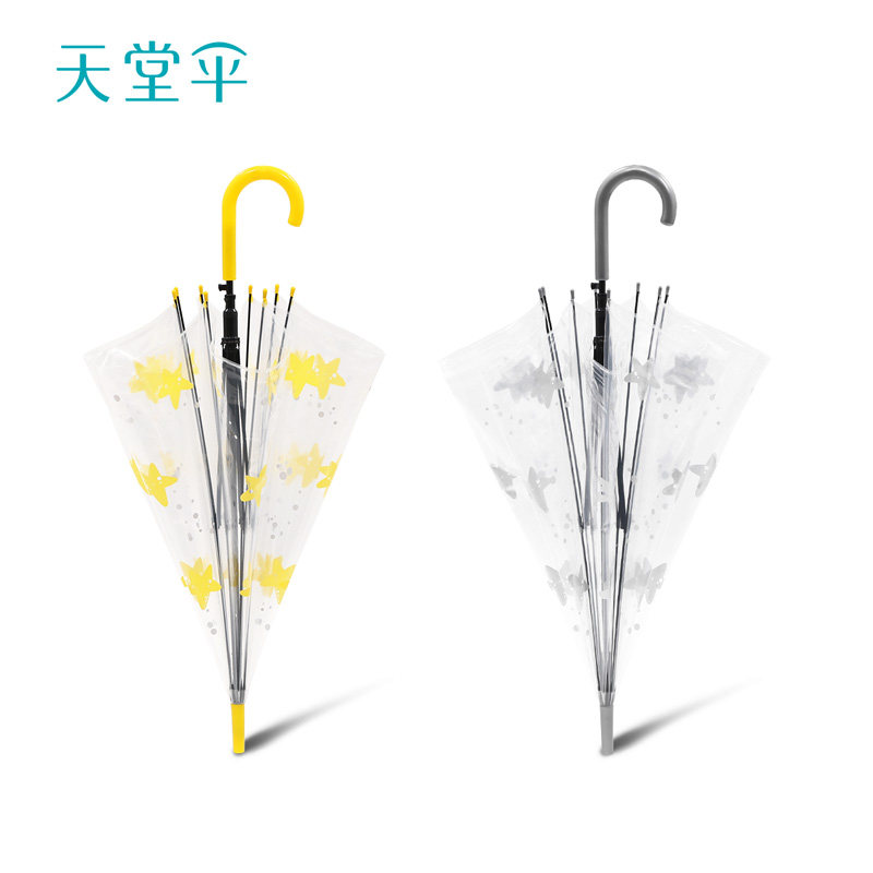 天堂 Зонтик полупрозрачный зонтик Женский длинный стержень Студент Студент Студент Полуаутоматический зонтик Сильный, Портативный складной дождь и дождь, два самообучения