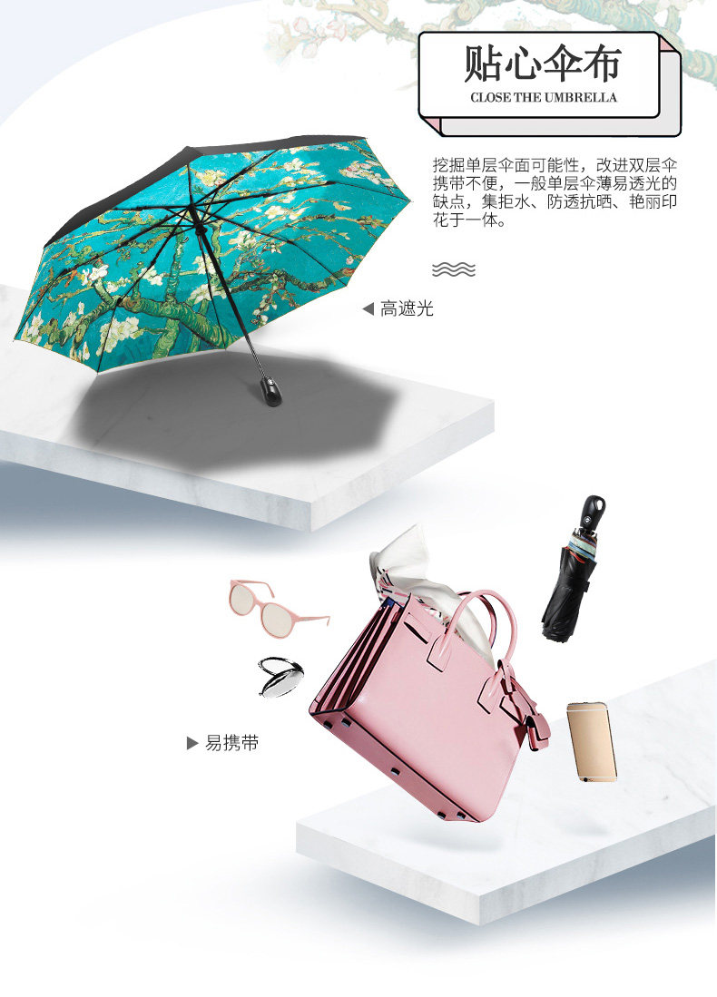 天堂 Оригинальный портативный складной музей, ультрафиолетовый зонтик на солнечной энергии подходит для мужчин и женщин, защита от солнца, защита от ультрафиолета