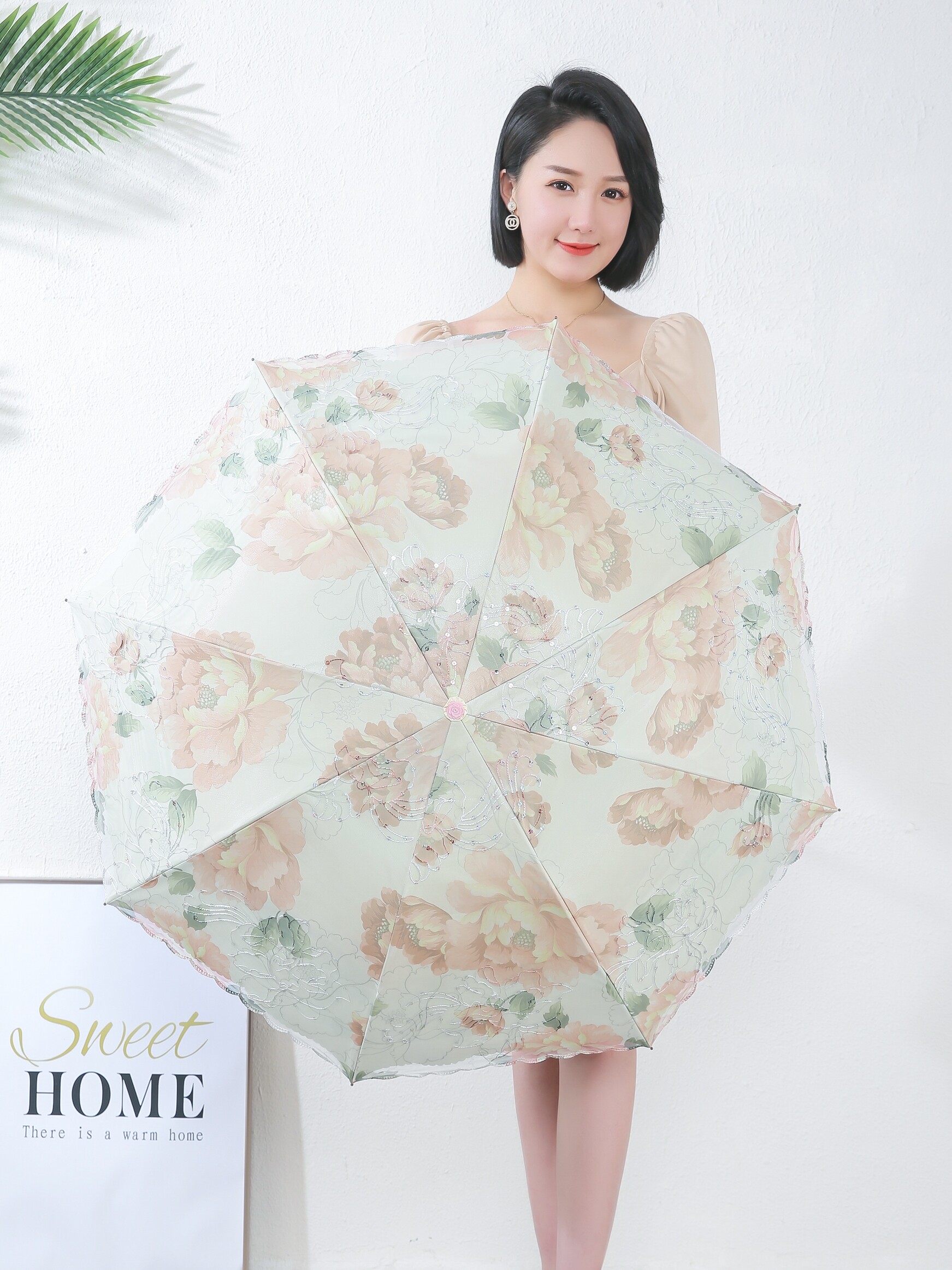 Двухэтажный зонтик на солнечной энергии, защита от солнца, защита от ультрафиолета, с вышивкой