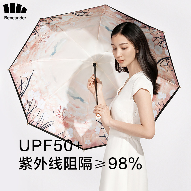 Бамбуковый солнцезащитный зонтик женский UPF50 Super Ultraviolet Antratraviolet Double-Layer Vinyl Sunscreen Двойной складной зонт