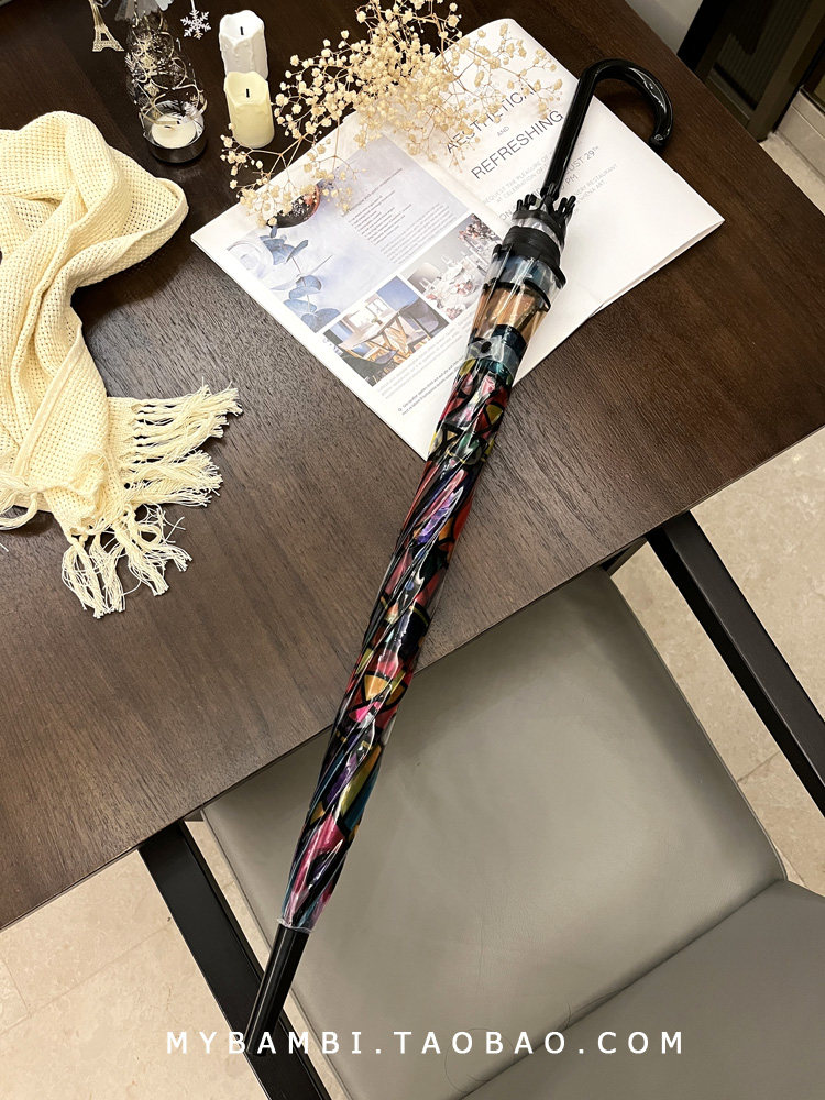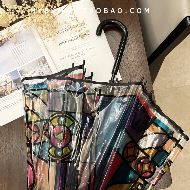 Высоко -значение романтическое ретро -окрашенное цветовое стеклянное зонтик прозрачный изгиб крюк Полуавтоматический принцесса с длинной зонтичной зонтикой