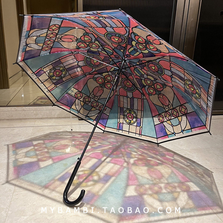 Вся зонтичная поверхность - красочный стеклянный рисунок церкви