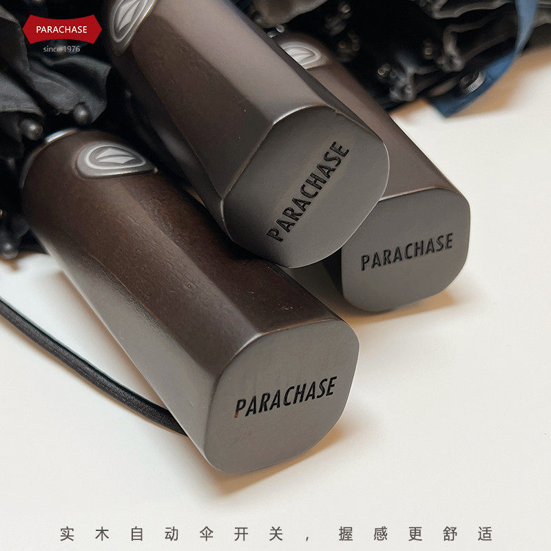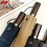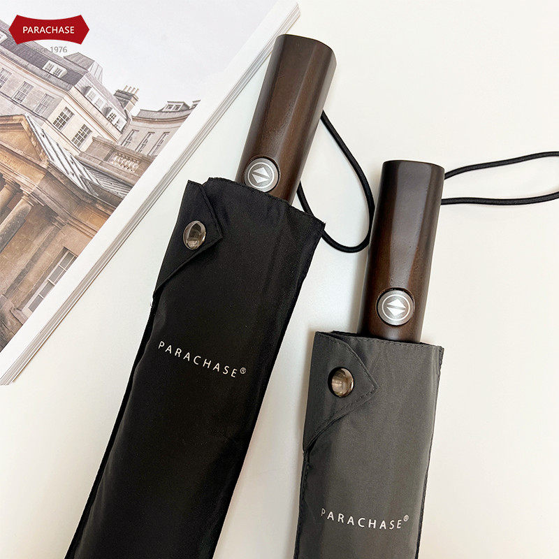 PARACHASE Ретро стиль сплошной древесина с твердым цветом автоматическое зонтик трехкратный армию