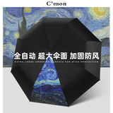 Автоматический зонтик CMON увеличил твердую твердую твердую твердую твердую и ветер, устойчиво к рисованию маслом самооценка, гиллар и дождь и дождь.