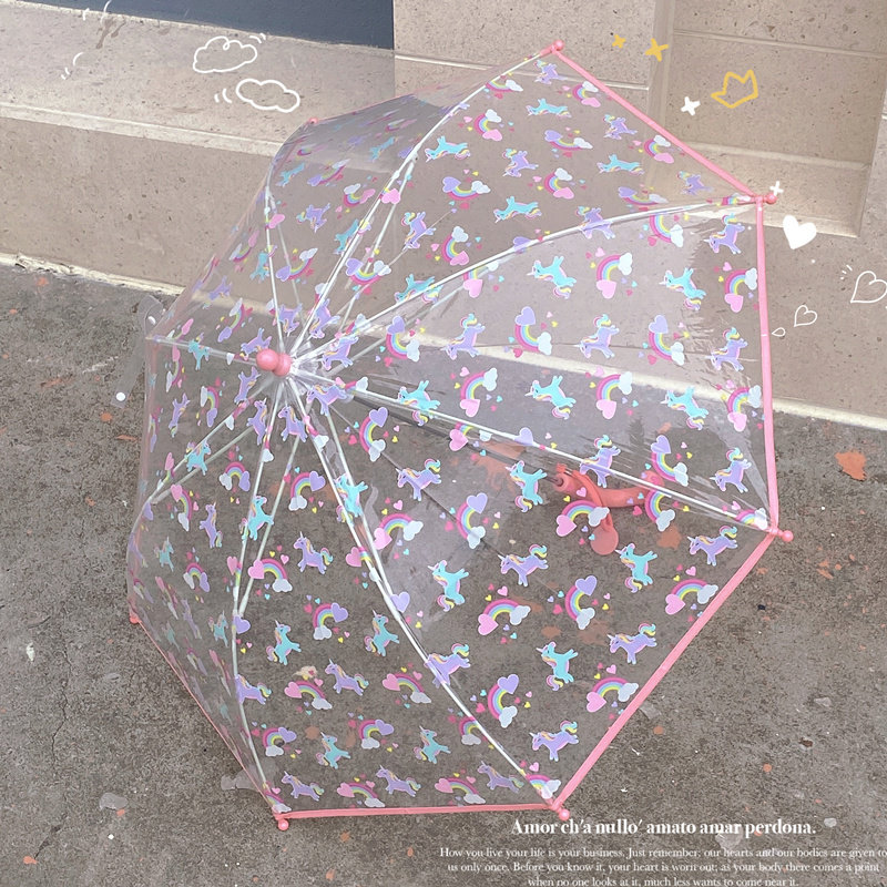 Розовый милый детский мультяшный автоматический зонтик для школьников и студентов для детского сада