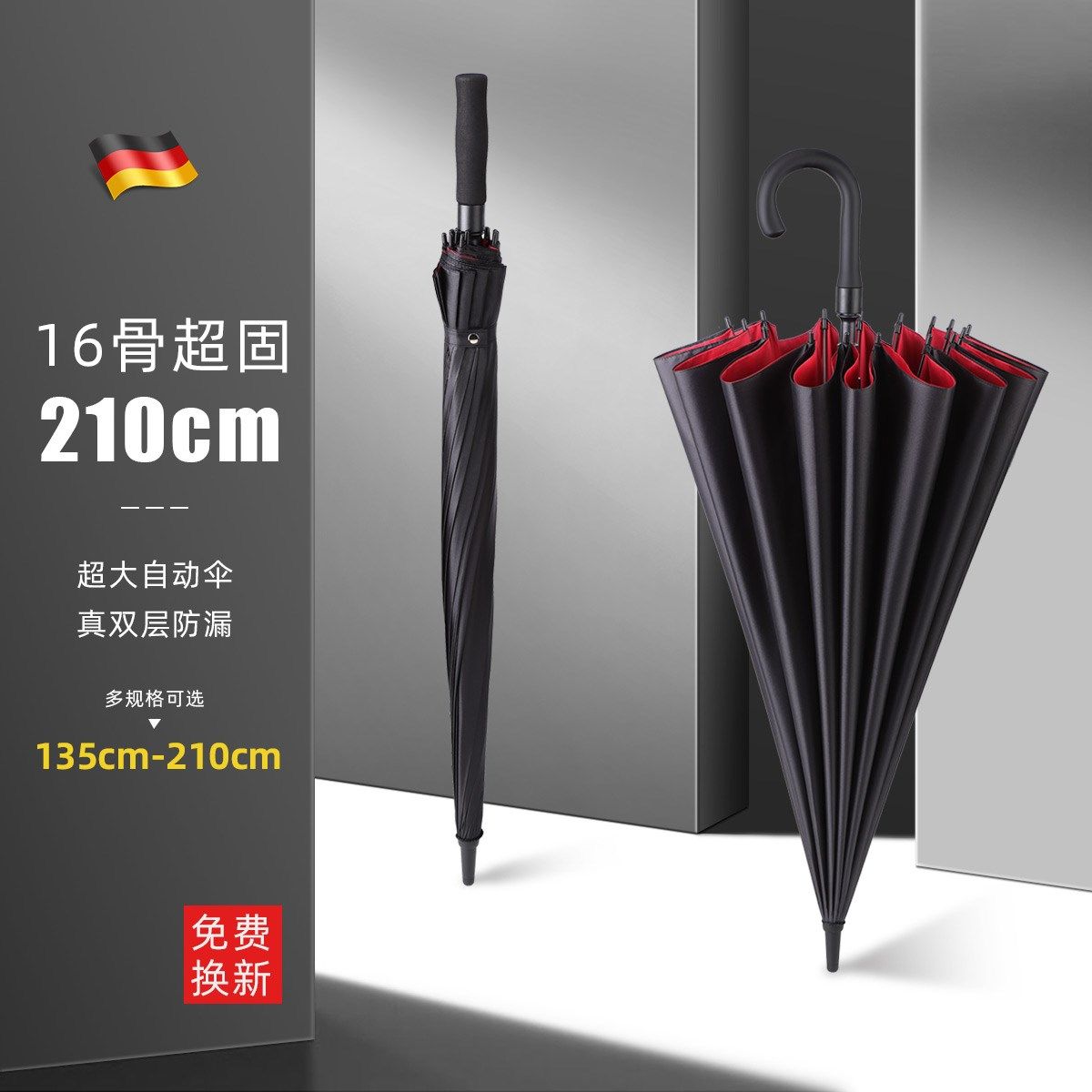 Немецкий зонтик с длинным двойным слоем большой мужской сопротивление ветра Супер густой армированный ливень посвящен трем людям 16 настройка кости