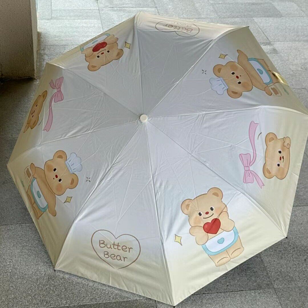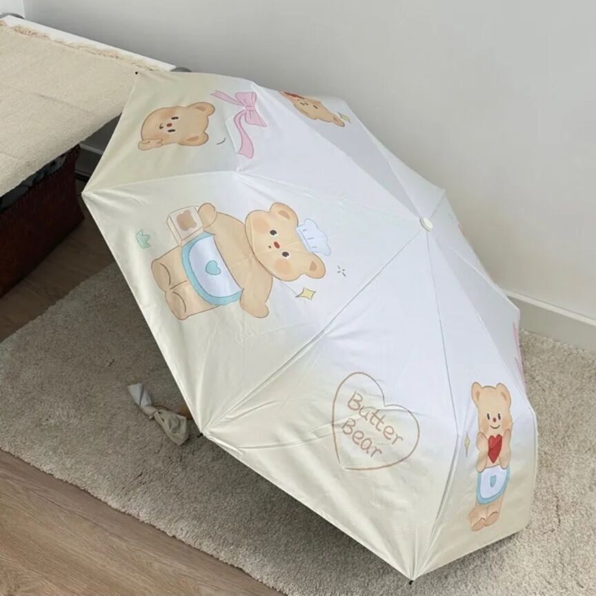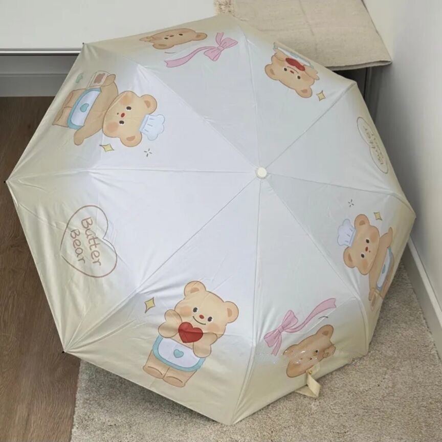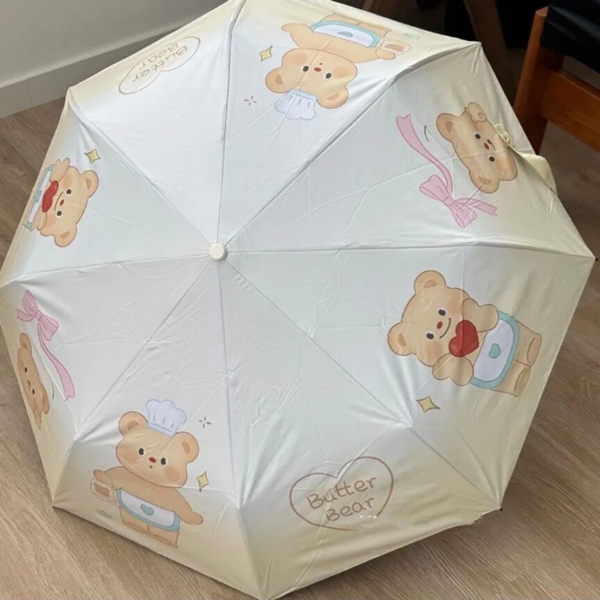 Масло, маленький портативный автоматический зонтик для школьников и студентов, с медвежатами, увеличенная толщина, полностью автоматический