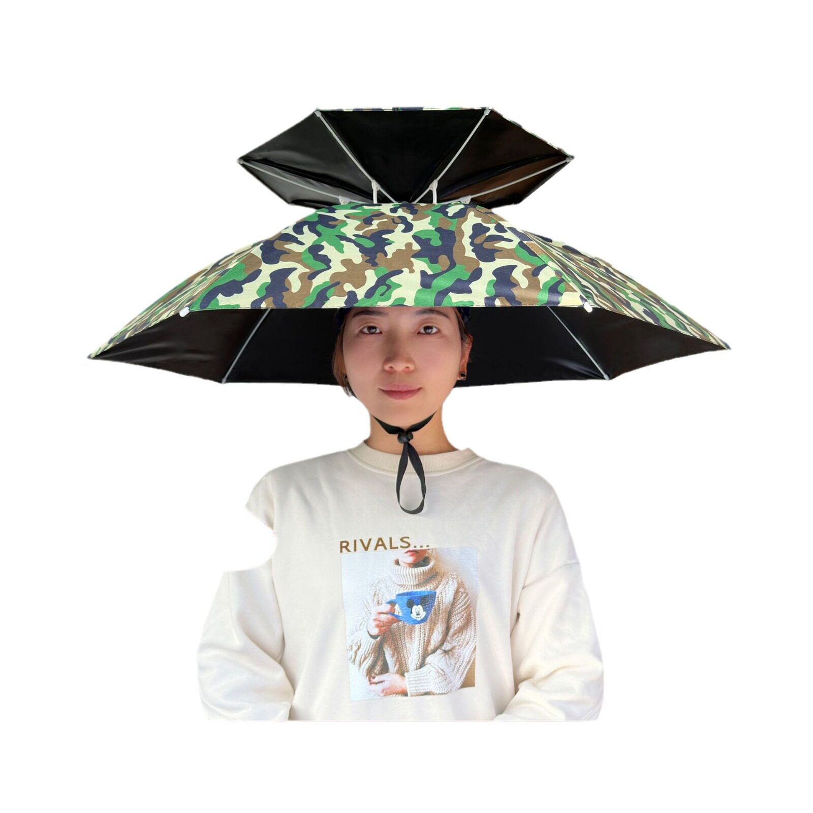 Первая голова с зонтичной шляпой в солнцезащитном солнцезащитном креме.