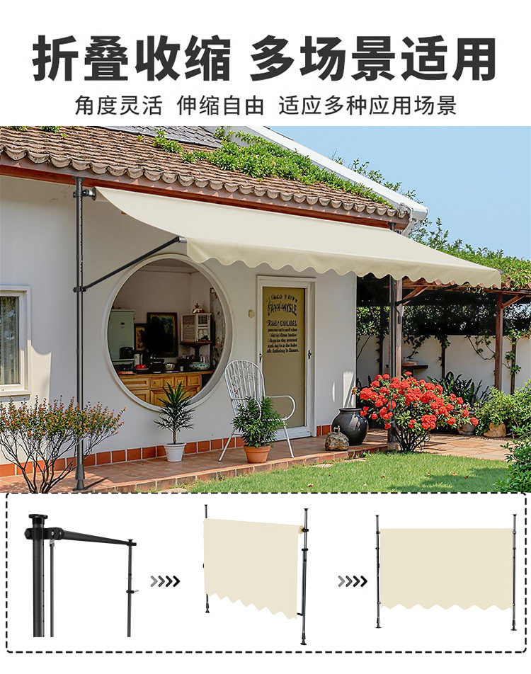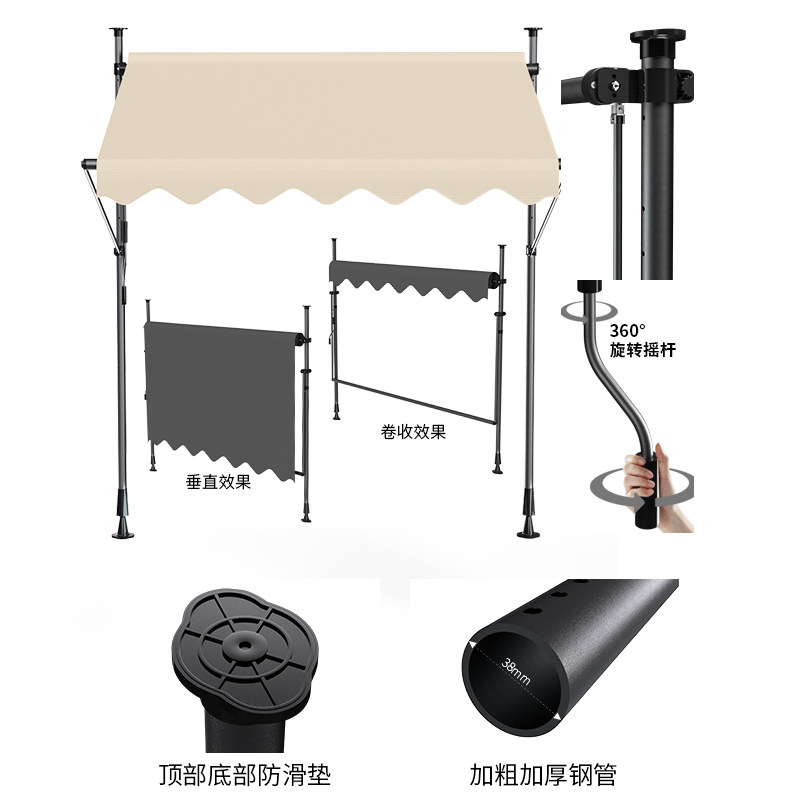 Магазинные зонтики без перфорации, складные выдвижные маркизы, уличные зонтики, открытый двор, шторы для домашнего балкона, ручные.