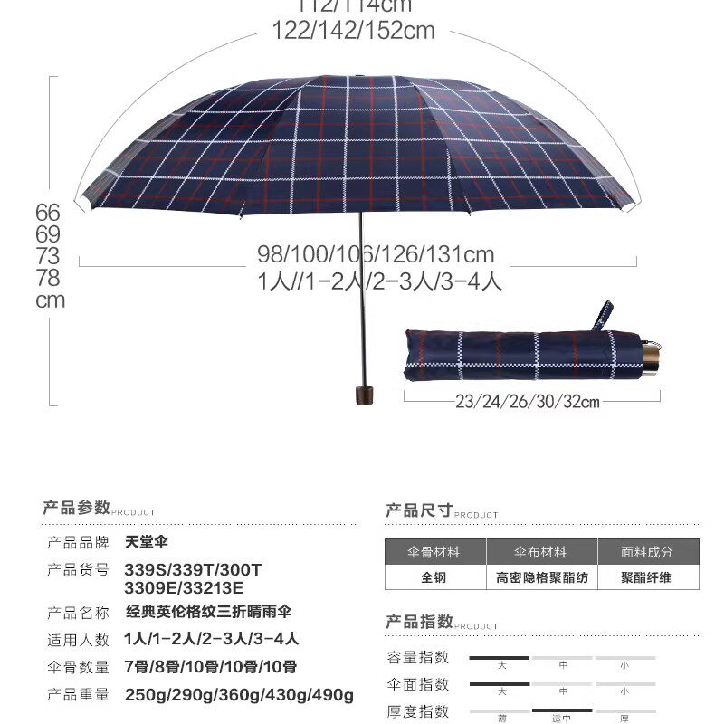 | Зонтик: | 122cm, 108cm, 105cm, 100cm, 96cm |