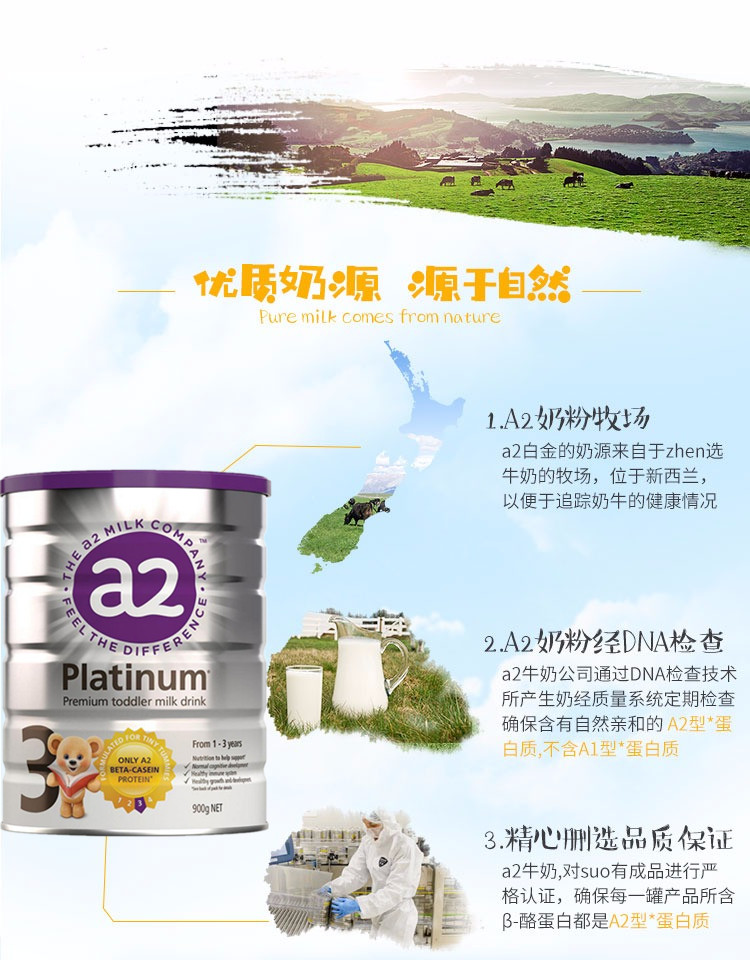 Австралия Новая Зеландия импортированная прямая почтовая почта A2 детская формула порошок молока 3-я платиновая серия 1-3 года консервирования 900G