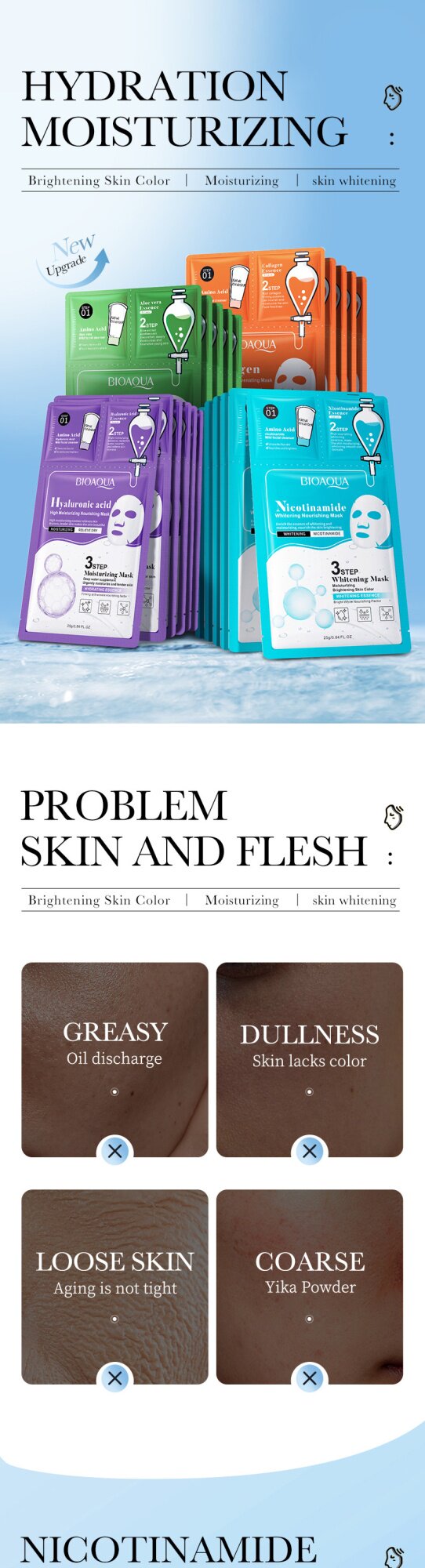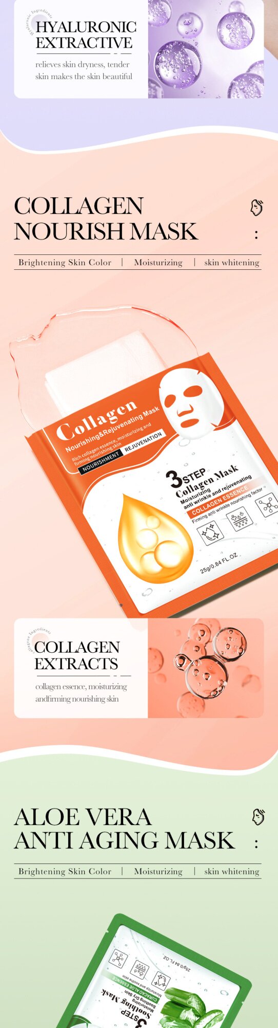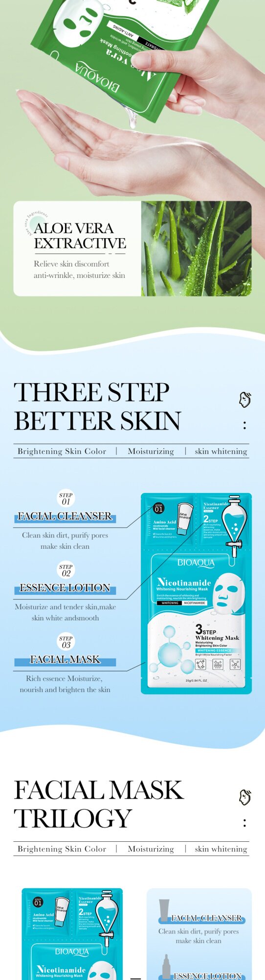 Все английские биоауа коллаген из трех частей маски для лица увлажняют, увлажняют и очищают внешнюю торговлю