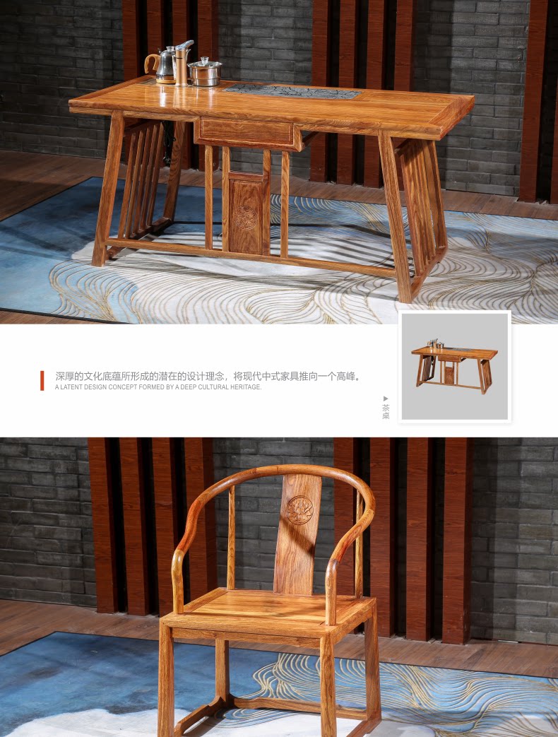 息多宝 Чайный стол Hualu Muku Новый китайский чайный стол и стул Комбинированное сплошное дерево Camellia Camellia чайное стол