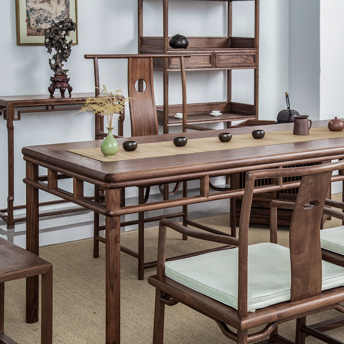 Старый вяза китайский чайная комната дзен твердый террасовый чайный стол и стул в сочетании с североамериканским черным деревом Walle Modern Simple Teast