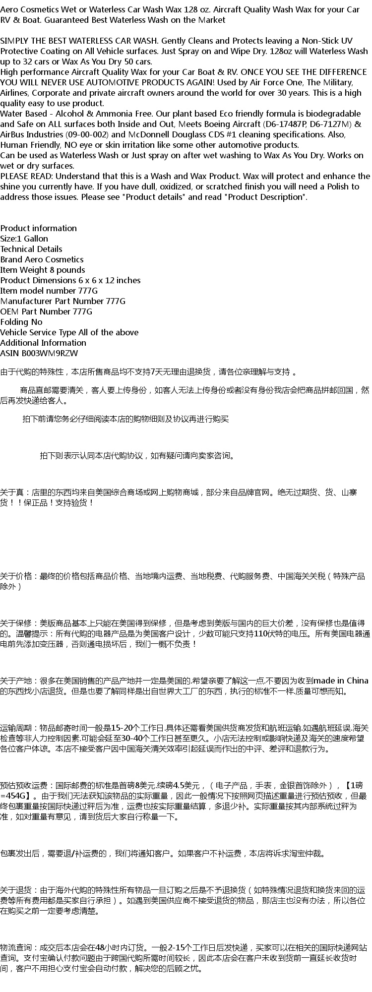 Aero Cosmetics Wet или Waterss Car Wax 128 унций