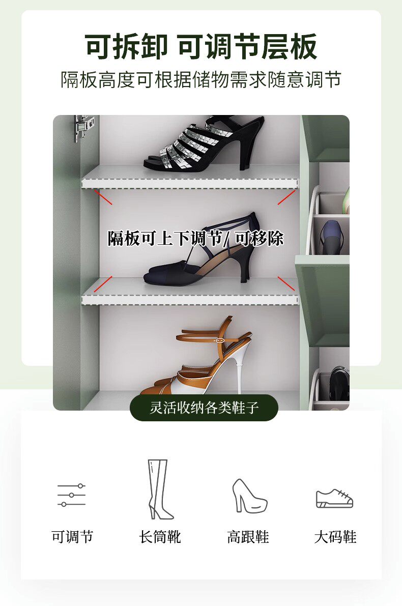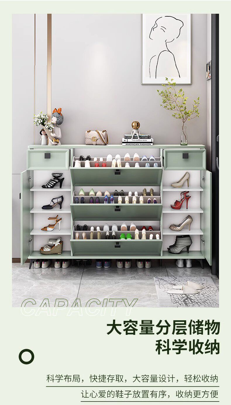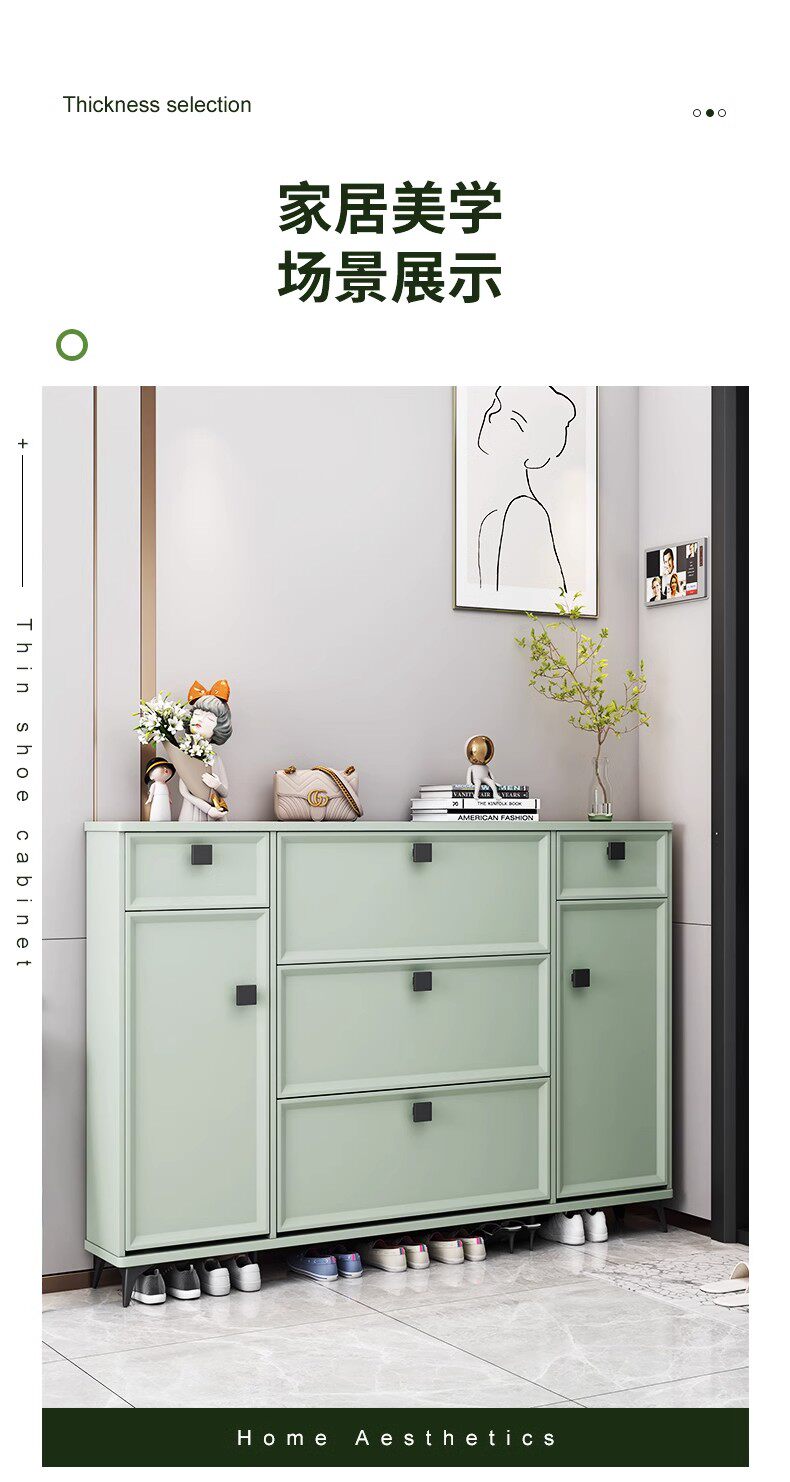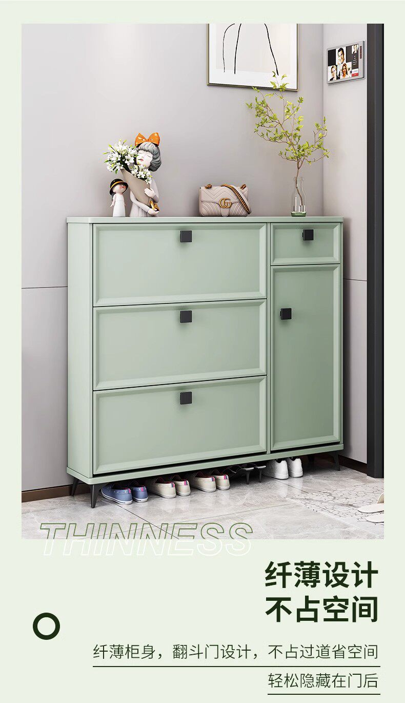 Шкаф для обуви Ультра -Тонкая домашняя дверь Новая 2024 г. взрывная дверь входная дверь Зеленая обувная шкаф Xuangance Шкаф