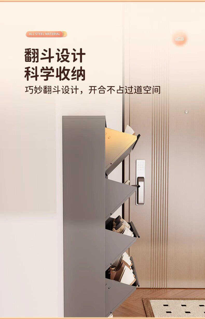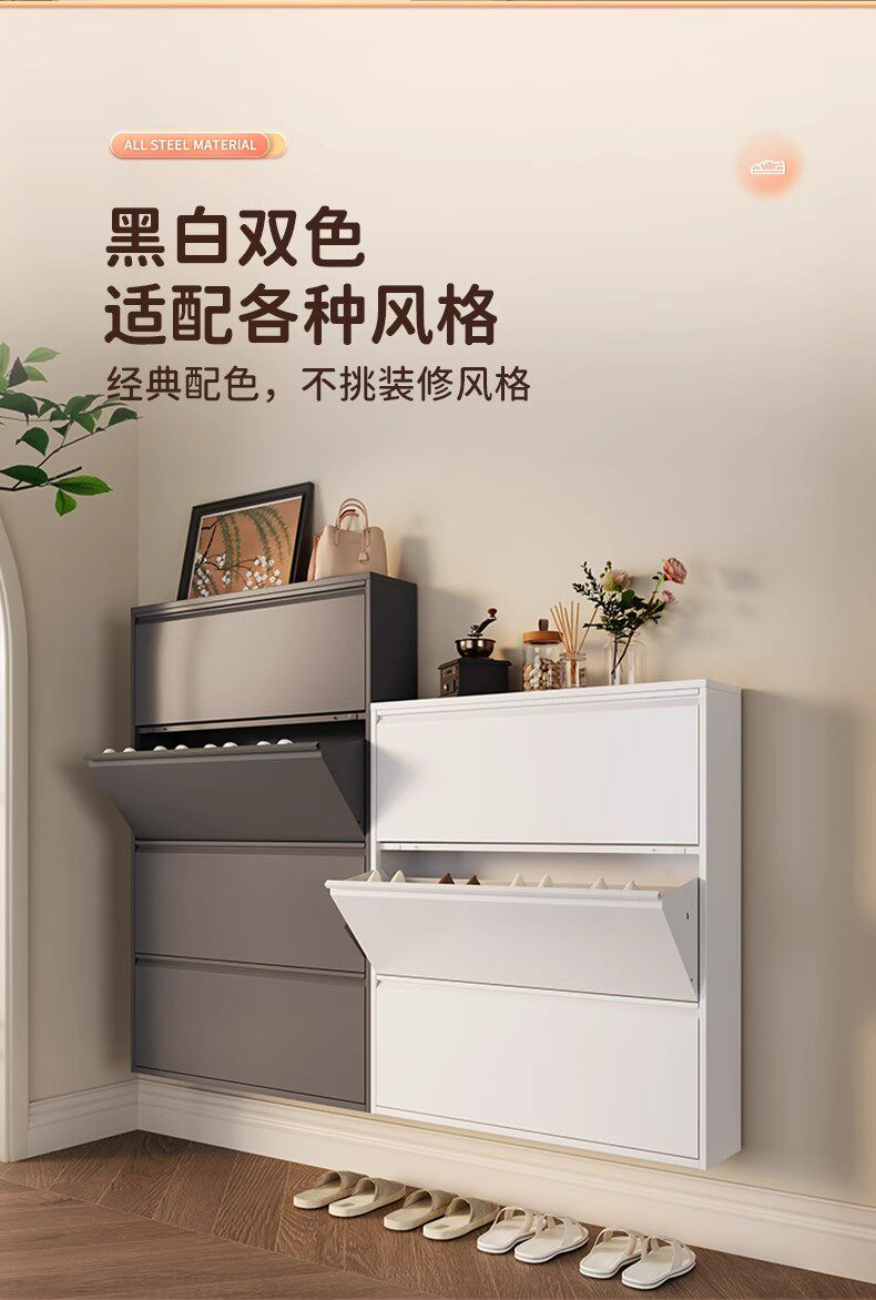 Ультра -тонкий стальный шкаф для обуви 12 см. Входная дверь домашней комнаты находится рядом со стеной чрезвычайно узкой.