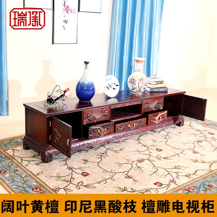 Руихенг мебель из красного дерева Черный розовый деревьев резные телевизионные шкаф широкий прокатный классический шкаф в гостиной