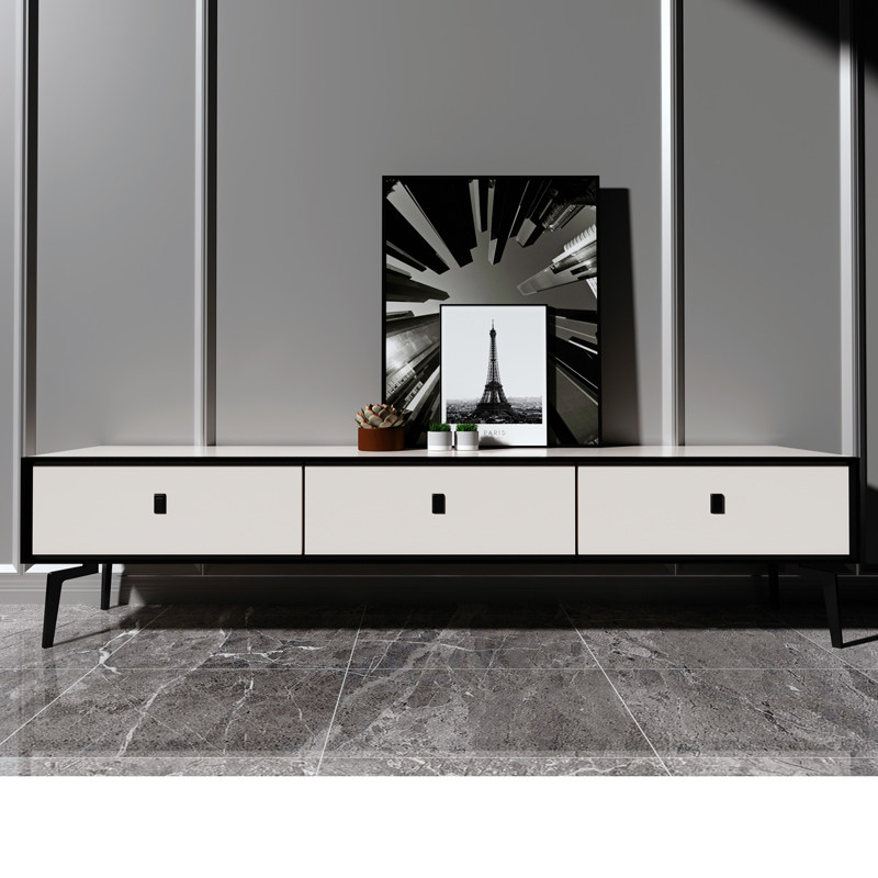 Итальянская минималистская гостиная современная минималистская телевизионная шкаф Комбинация кофейня Маленькая квартира Черно -белая сплошная древесина.