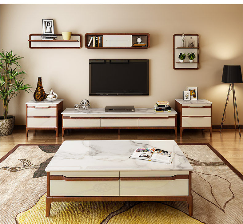 古宜 Твердый деревянный мраморный журнальный столик для телевизионного шкаф
