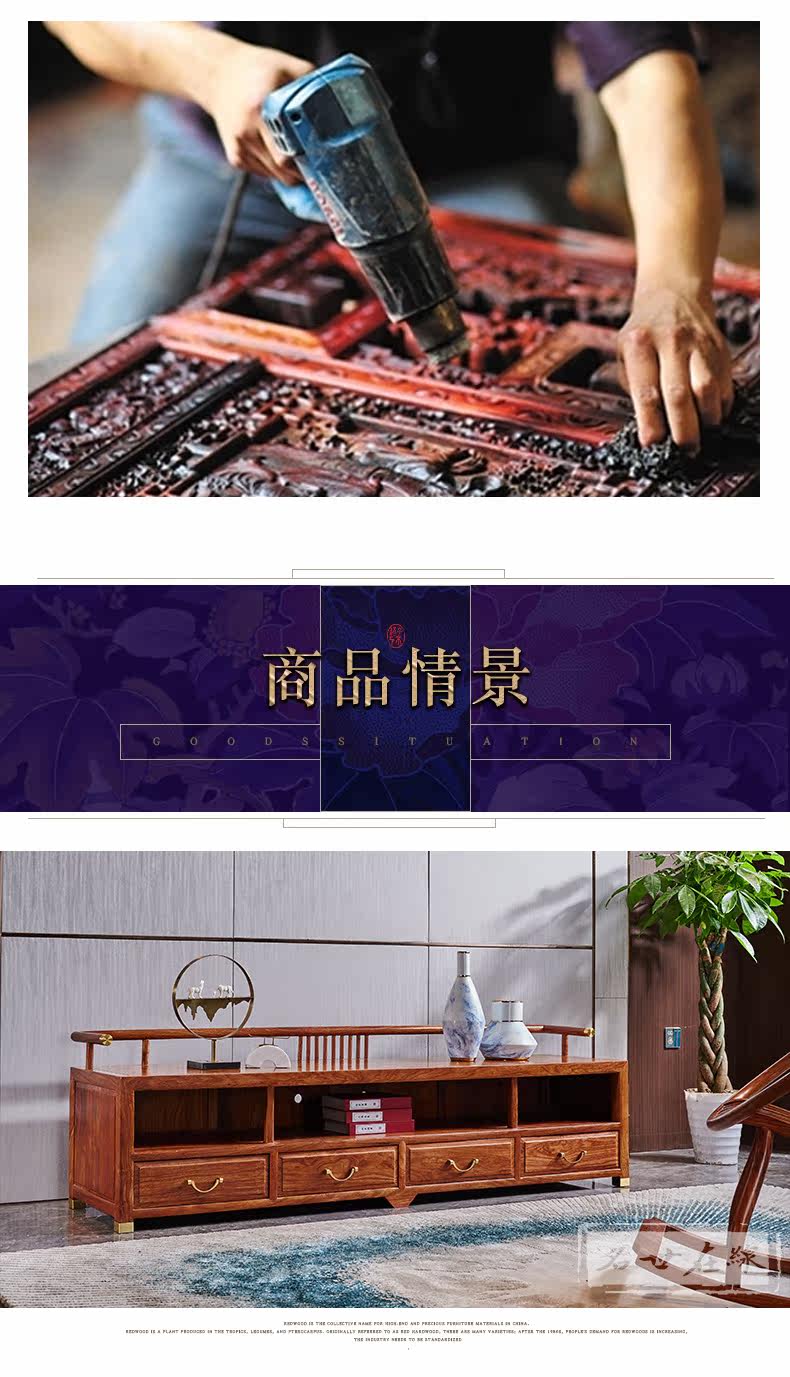 Розовыйвуд Новый твердый деревянный телевизионный шкаф гостиной приземляется на стене с стеной ежа паника