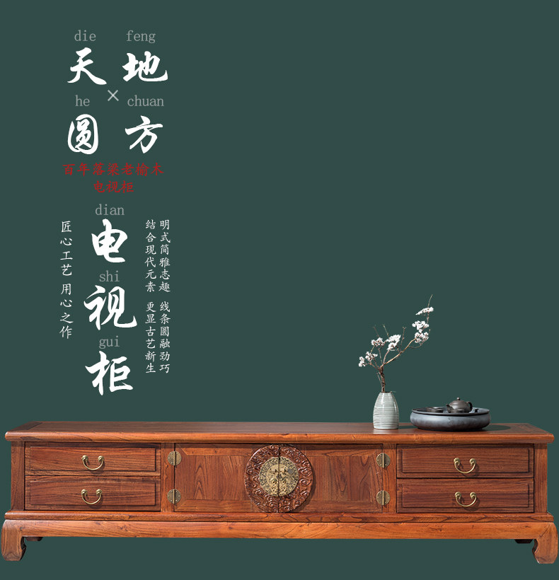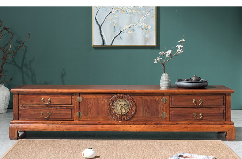 Новый китайский стиль Zen Император Lao Elm TV Шкаф обмещение сплошного деревянного кабинета современная простота, большая и небольшая квартира и телевизионные шкафы