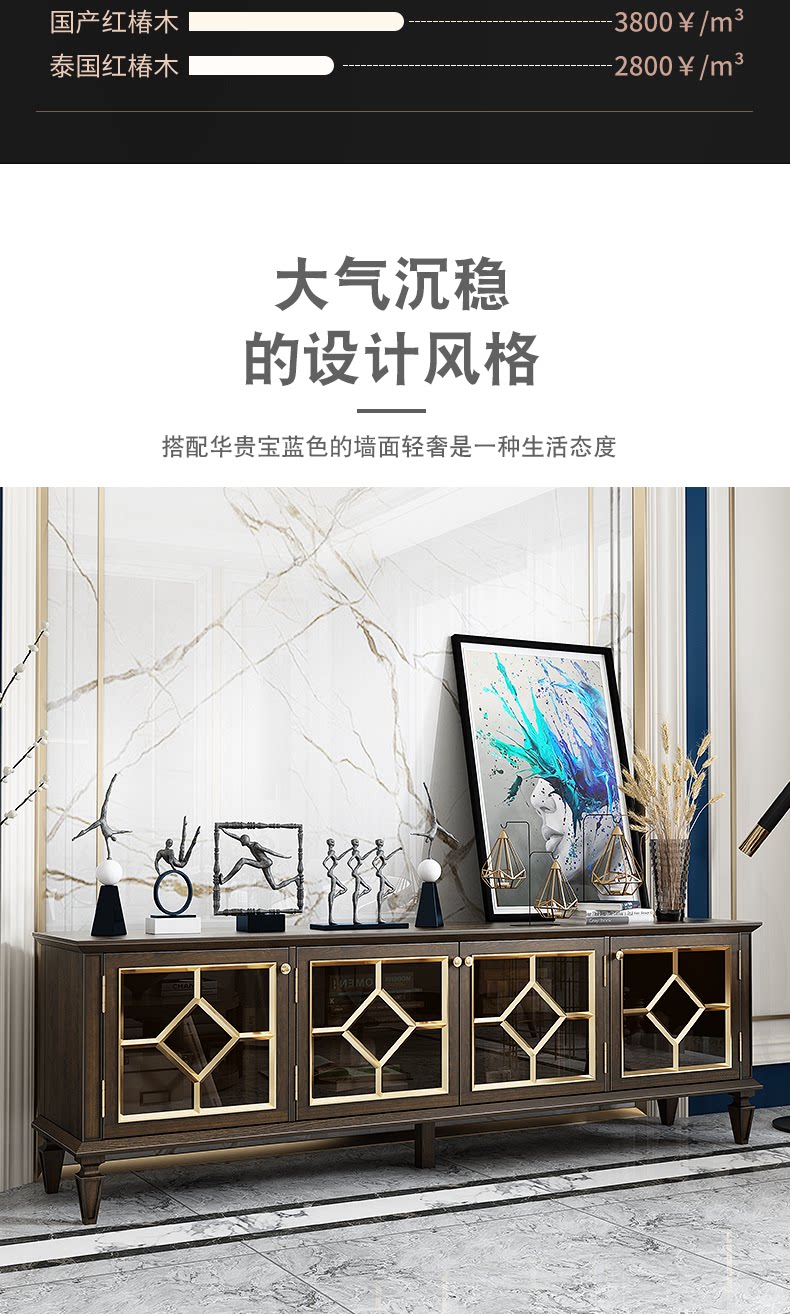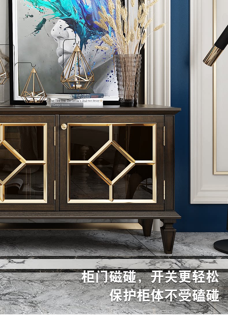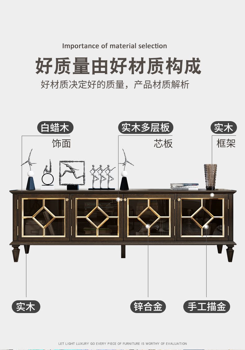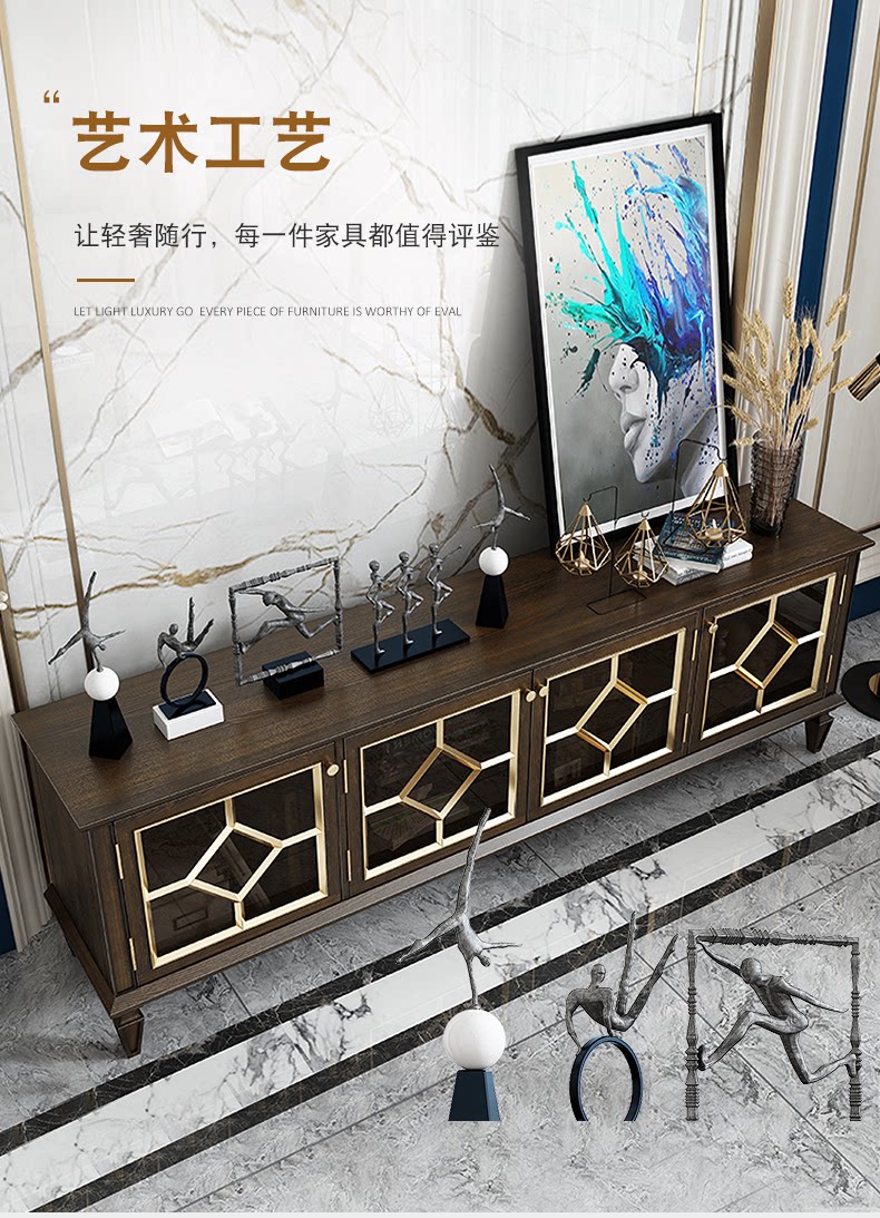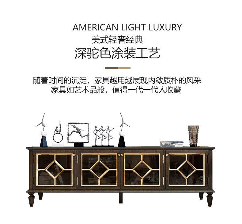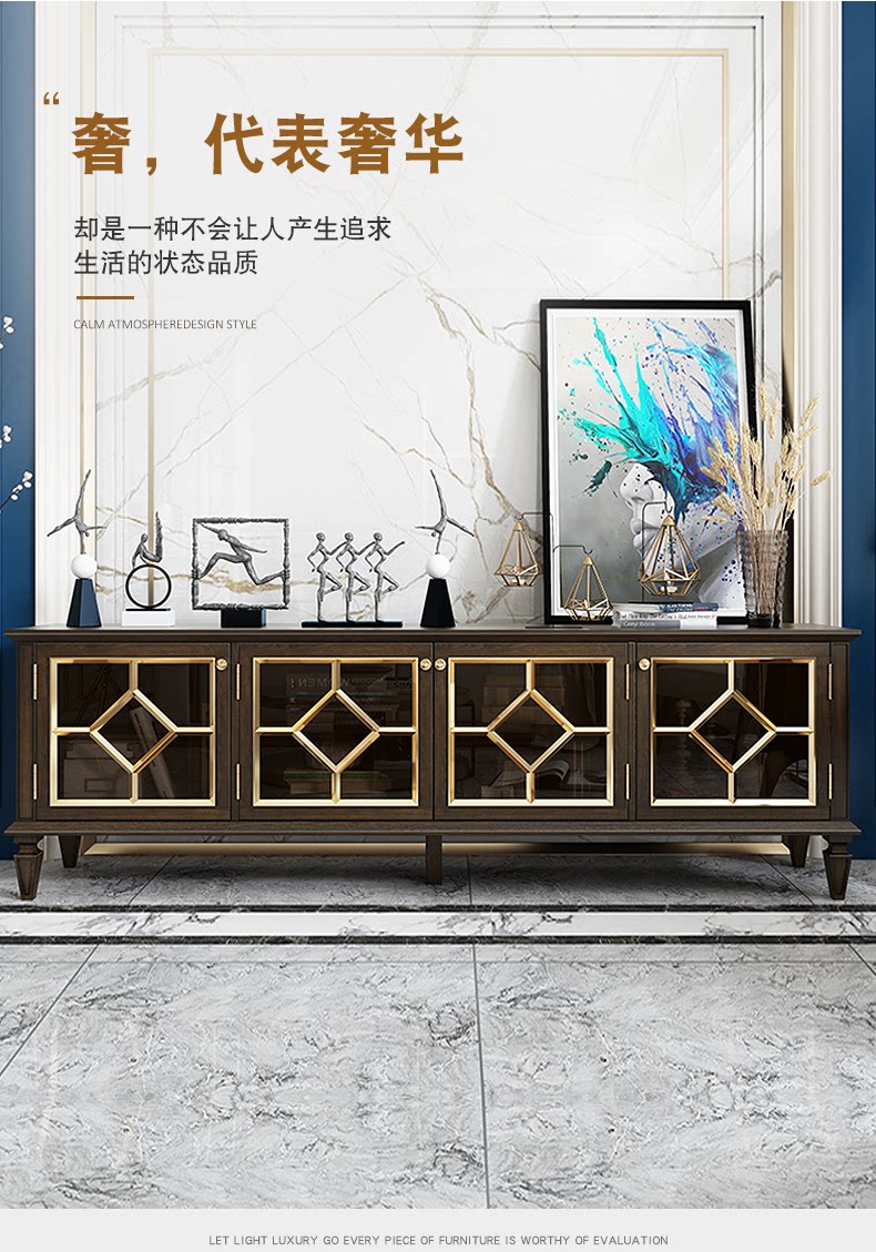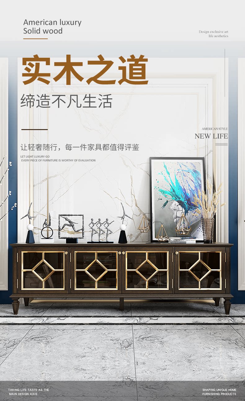 Американский легкий роскошный стиль полно -табличный деревянный телевизионный шкаф после современной простоты, модный высокий ореховый кофейный столик для кофейного столика