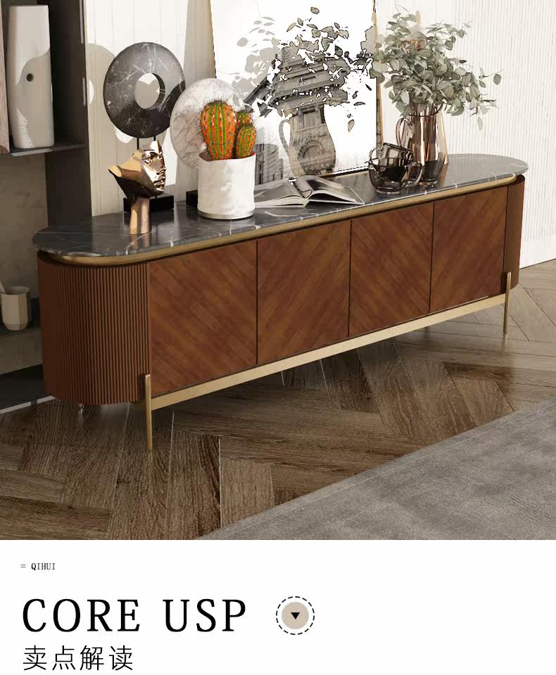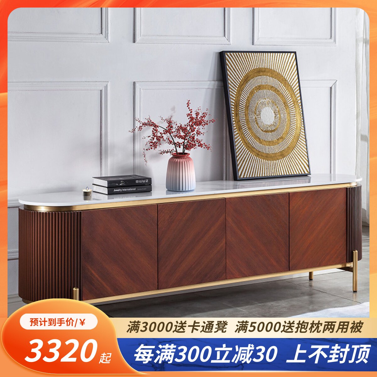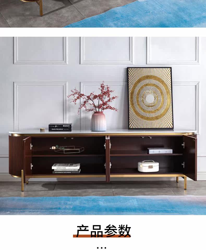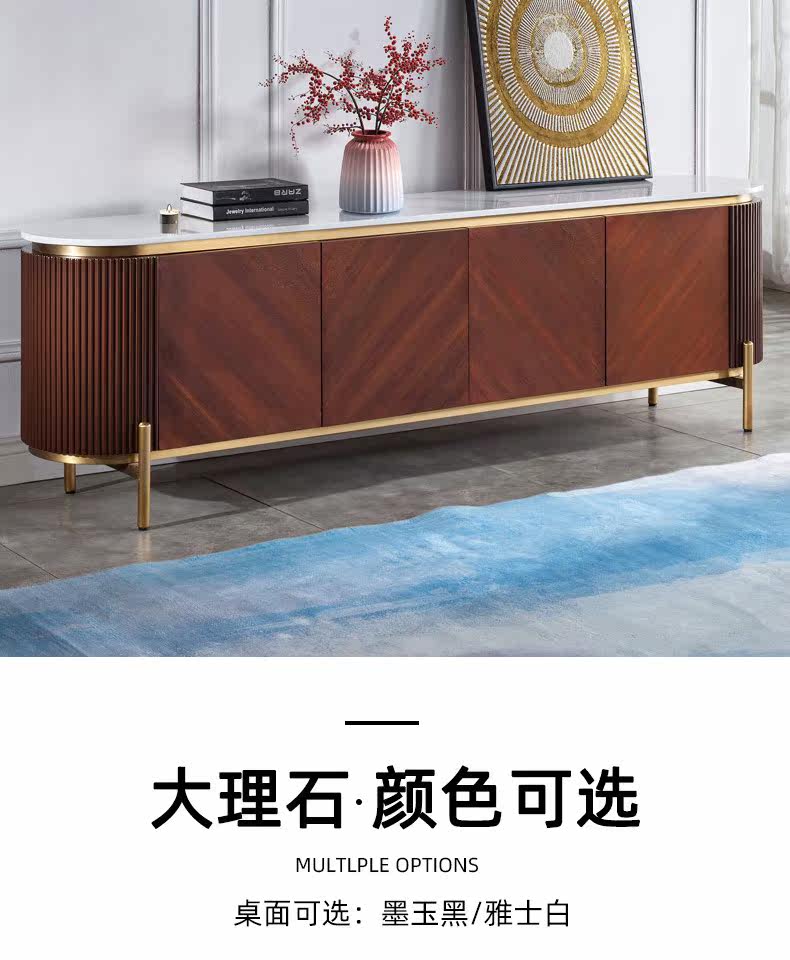 Телевизионный шкаф кофейный столик комбинация легкий роскошный стиль твердый дерево современный рок -доска сеть красная 60 Новый американский кабинет гостиной.