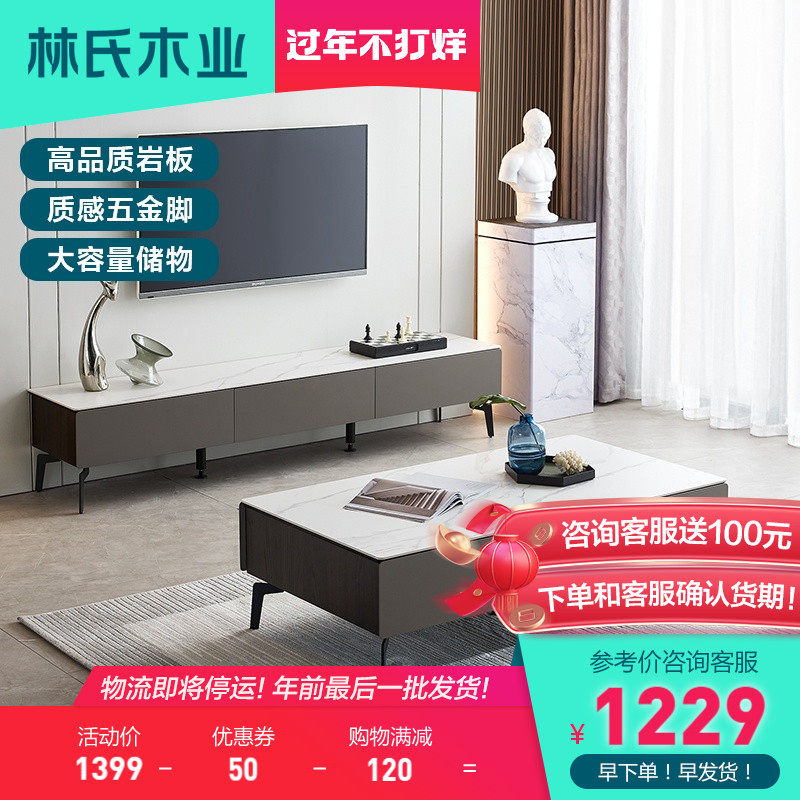 Лин Деревянный Рок доска телевизионный шкаф кофейный столик Комбинация маленькая квартира Итальянская легкая роскошная стиль хранения хранения Ci1m
