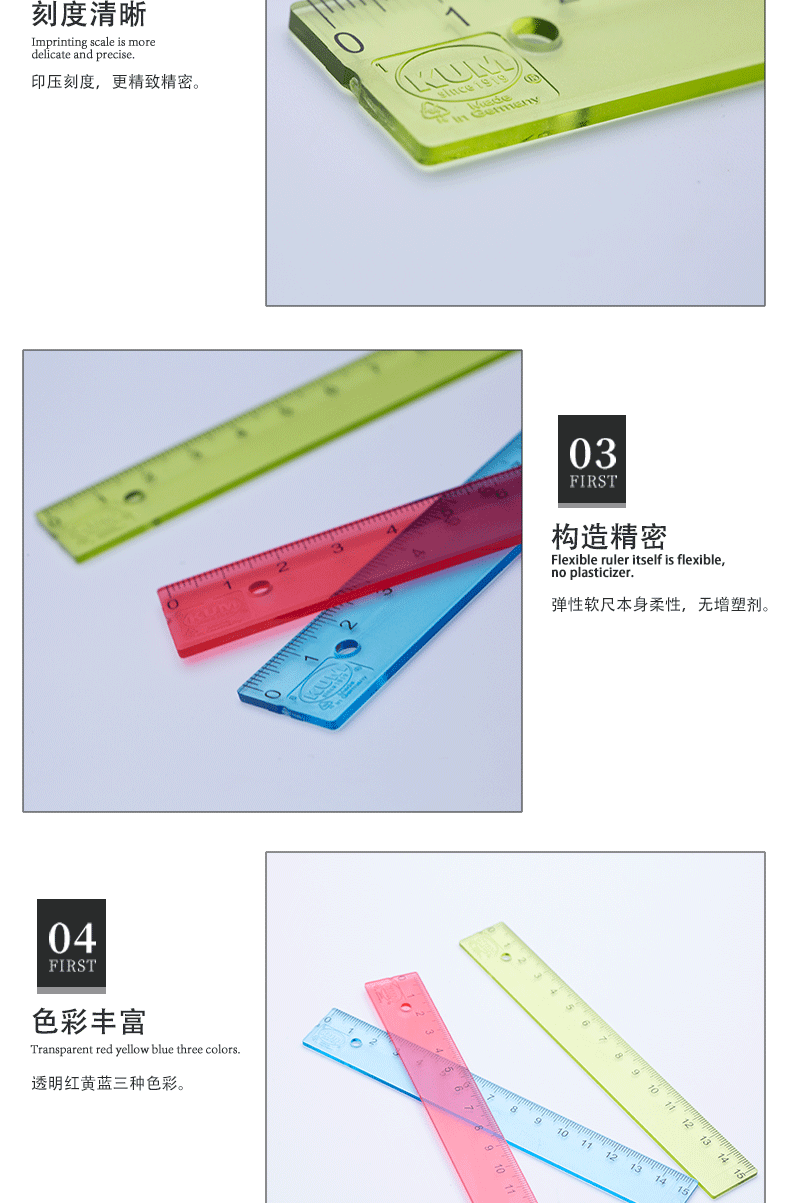 Германия KUM 15см Прямо Прямо Правитель Точный давление Точное масштаб.