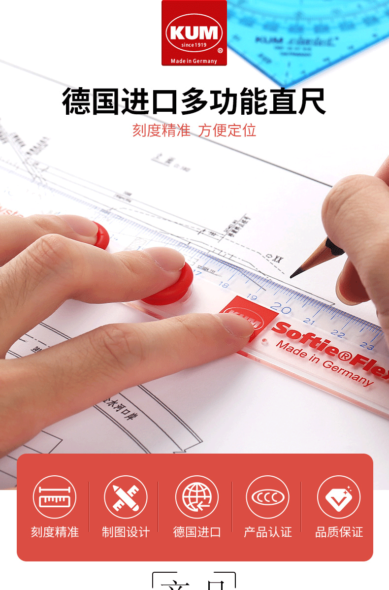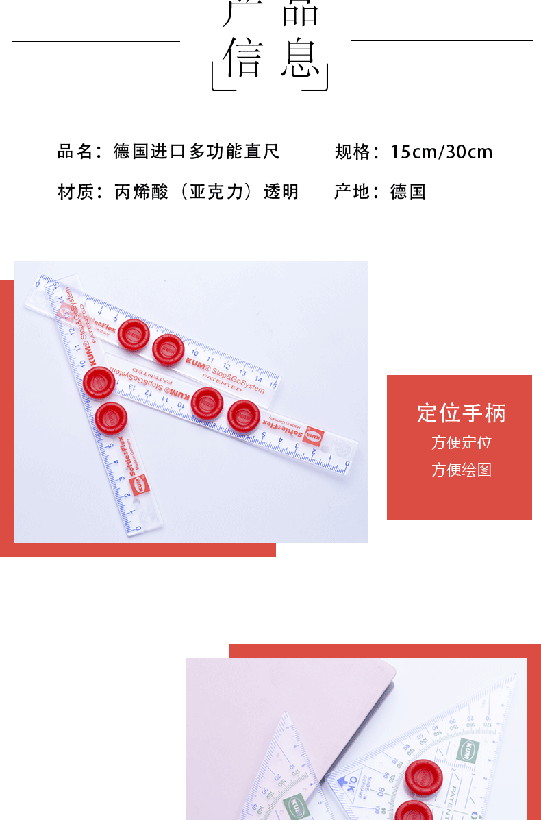 KUM Немецкая линейка с ручкой KUM, акриловая линейка, прозрачная с четкой и точной шкалой, линейка специальной высоты 15-30 см для рисования, учебные материалы для студентов
