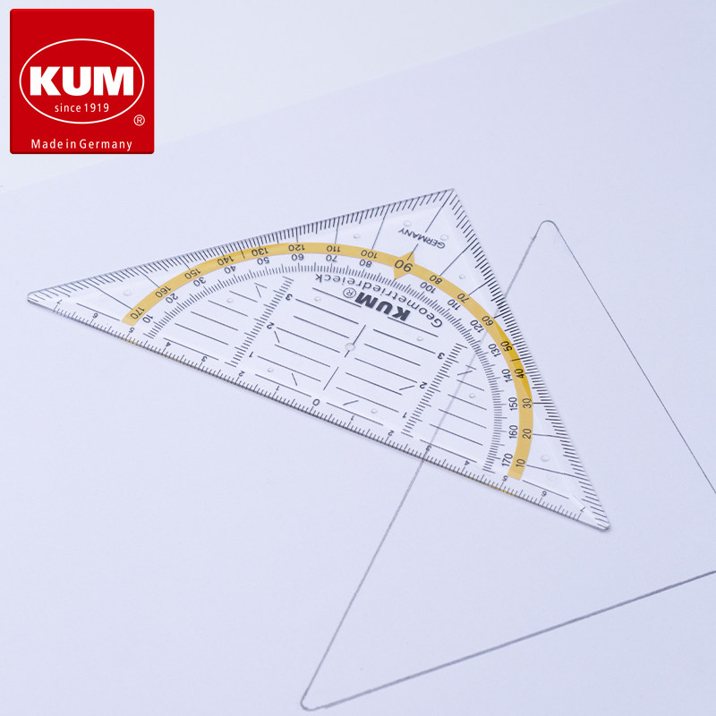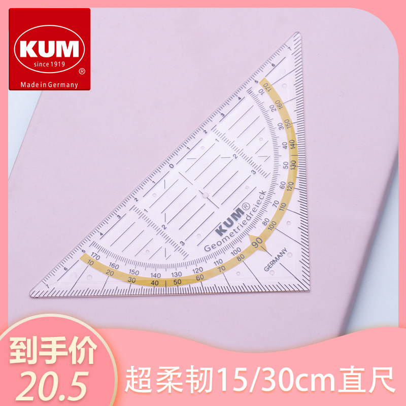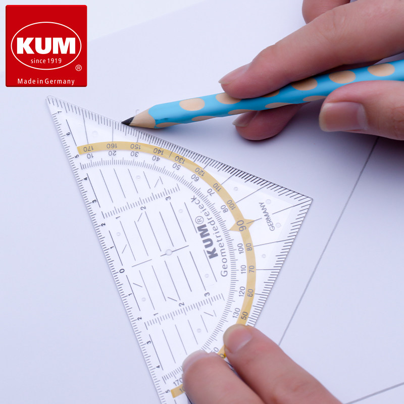 [德国库姆KUM多功能尺子14cm透明学生设计专用三角板量角器二合一直尺不掉色国标精度 25]