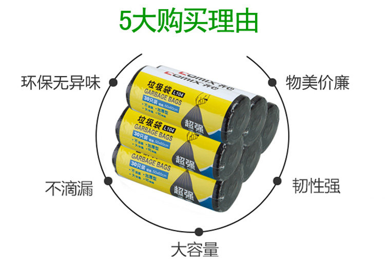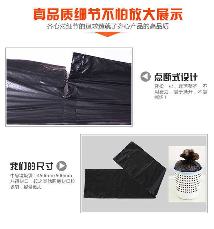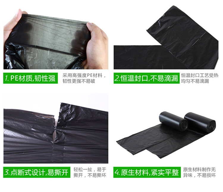 Большой черный портативный пластиковый мусорный мешок для домашнего использования, увеличенная толщина