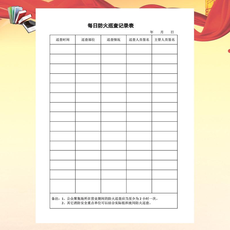 Ежедневная проверка пожарной охраны записи этой записи об инспекции пожарной службы пожарной безопасности.
