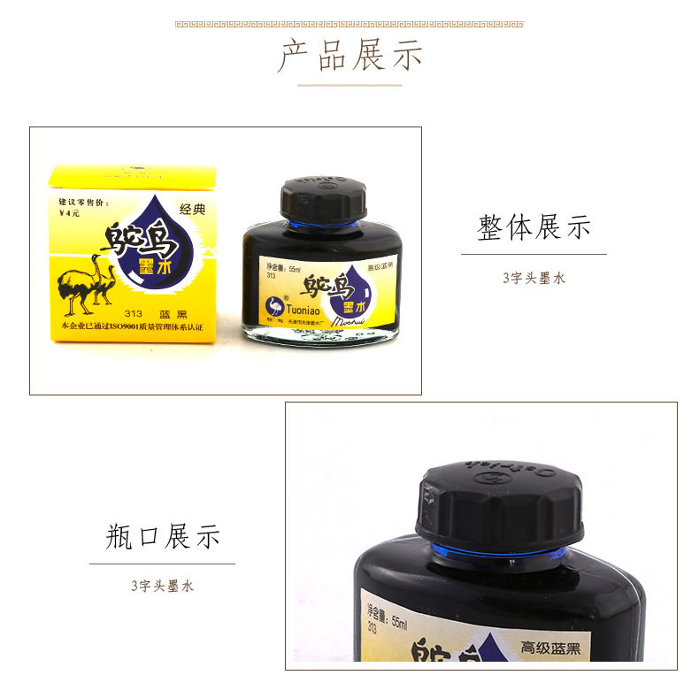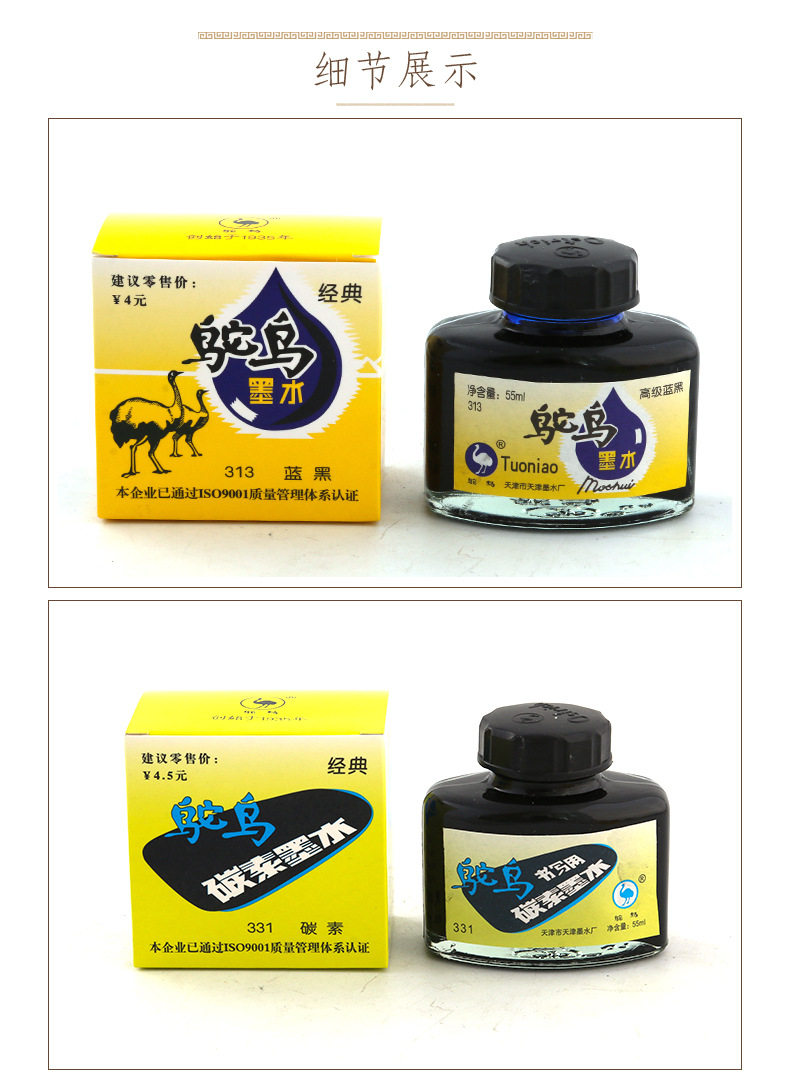 Подлинные стальные чернила из страуса из страуса чистое черное углерод