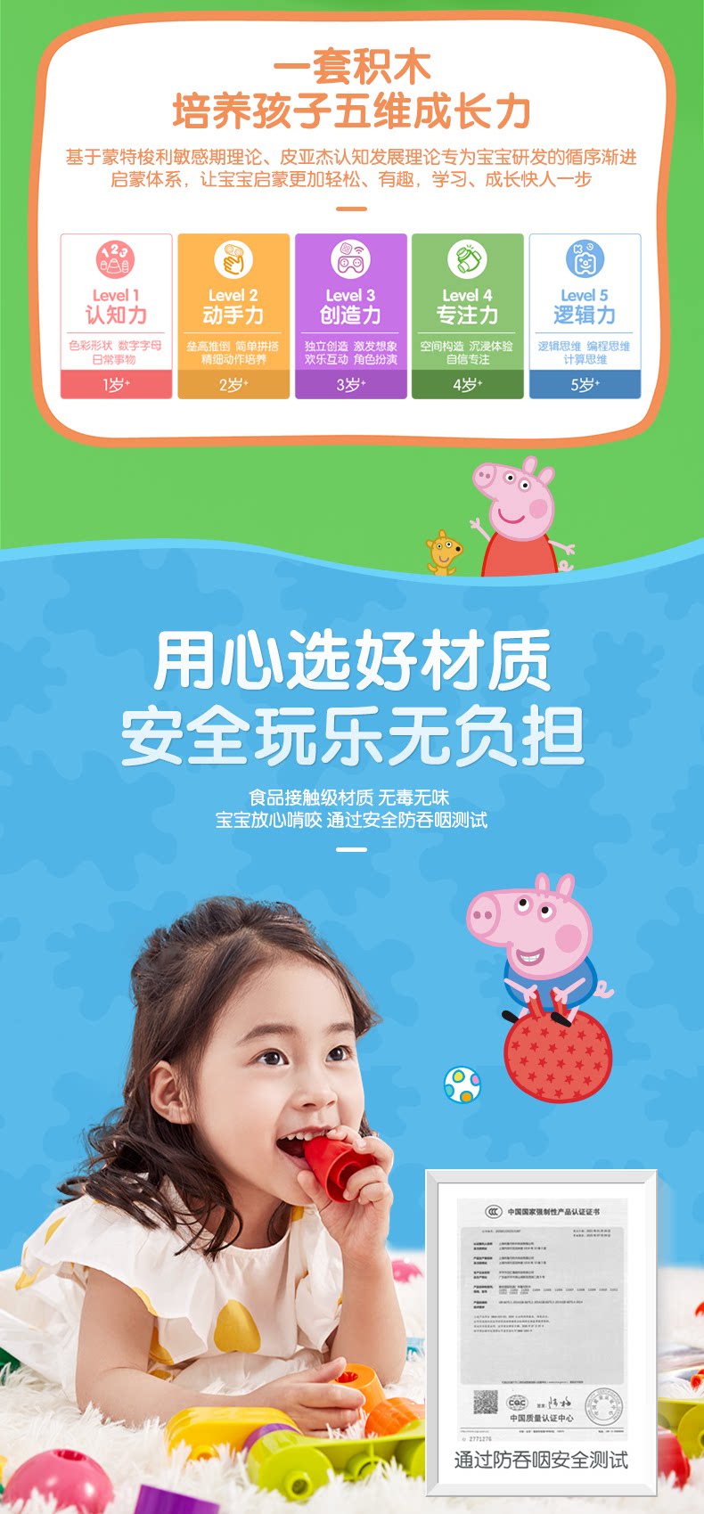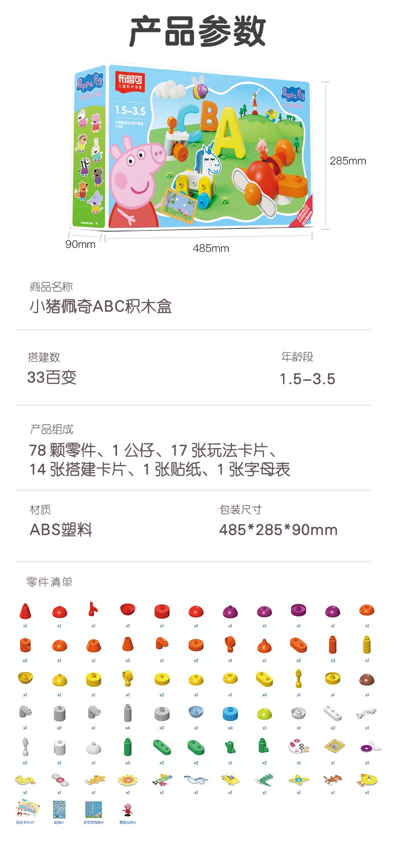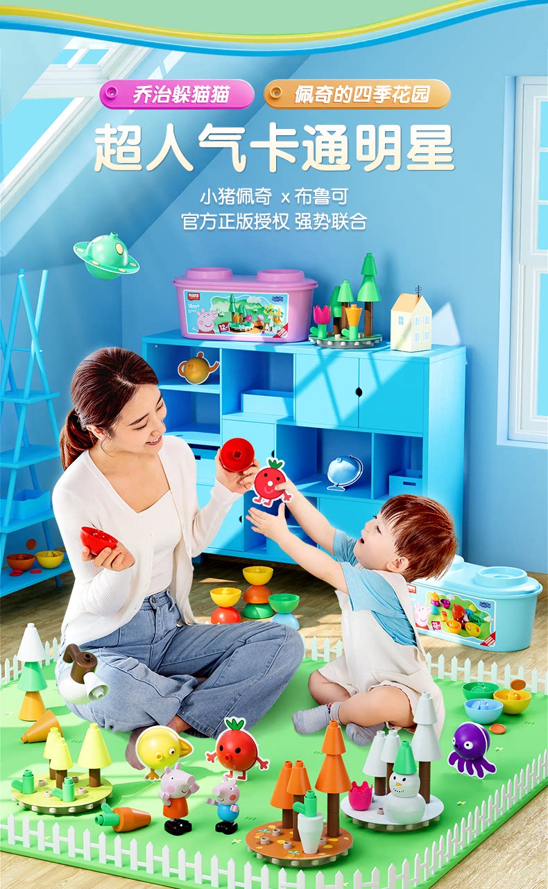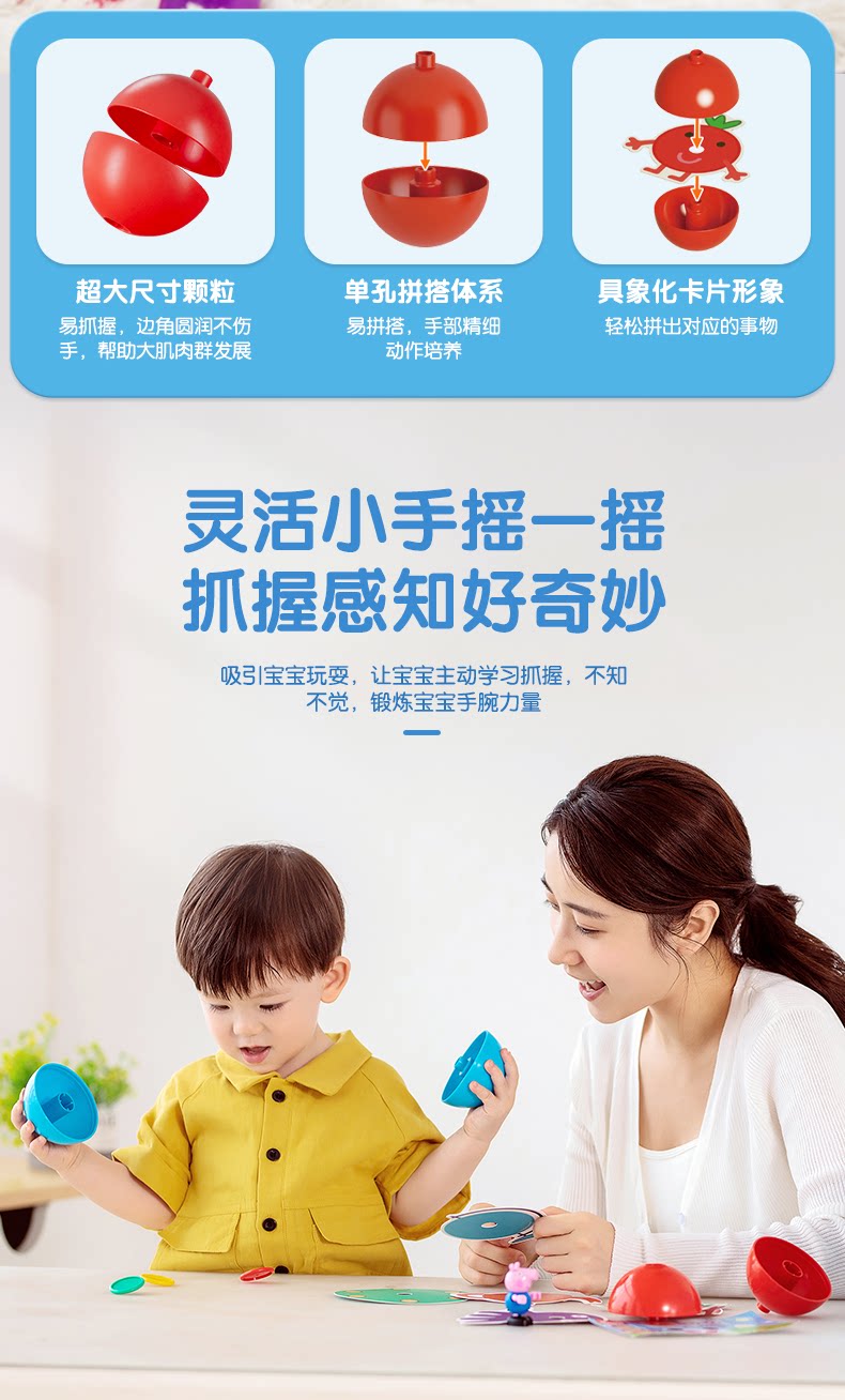 Brucex x Pig Peki Baby Buzzle Ранняя просвещение игрушки Qi Chu Большие гранулы детей Гладкие достопримечательности когнитивное образование культурное и творческое