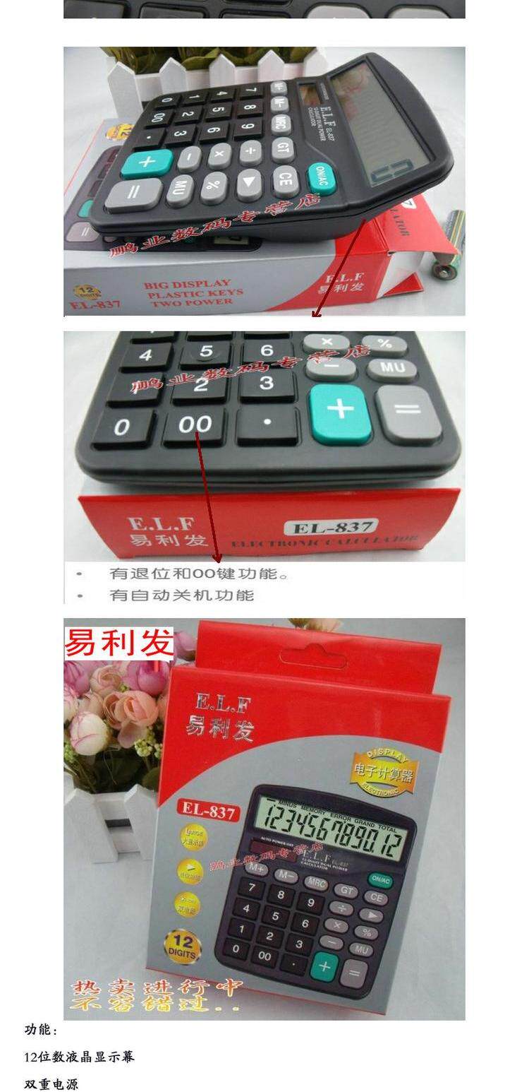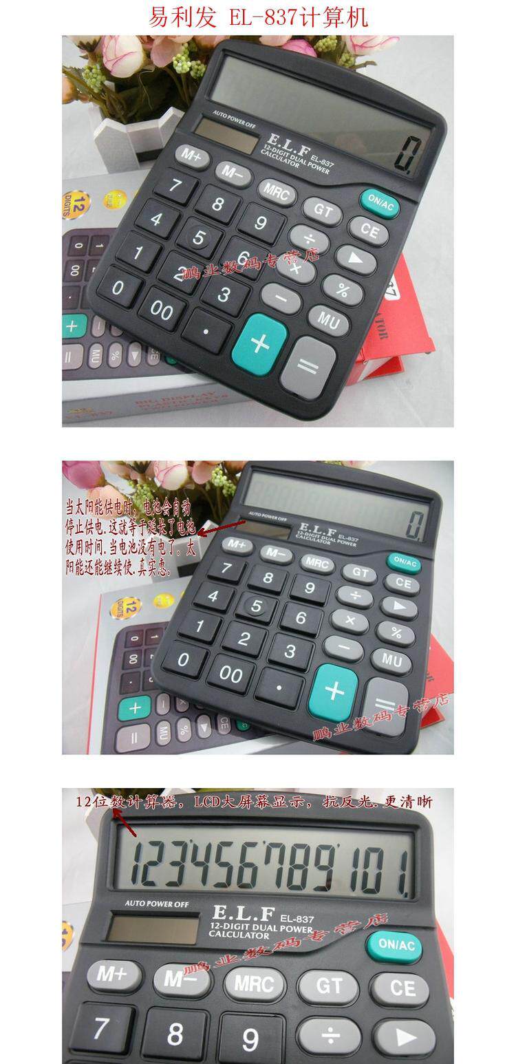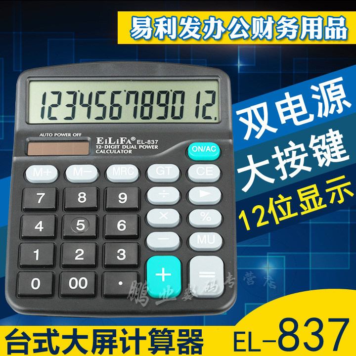 易利发 EL-837 Калькулятор большой дисплей настольный компьютер Солнечная энергия Двойной питания.