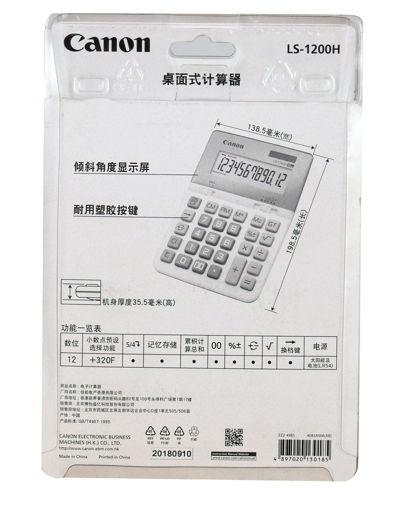 Canon Canon LS-1200H Office Business Business Прочный цветовой калькулятор большой финансовый специальный калькулятор большой ключ компьютер