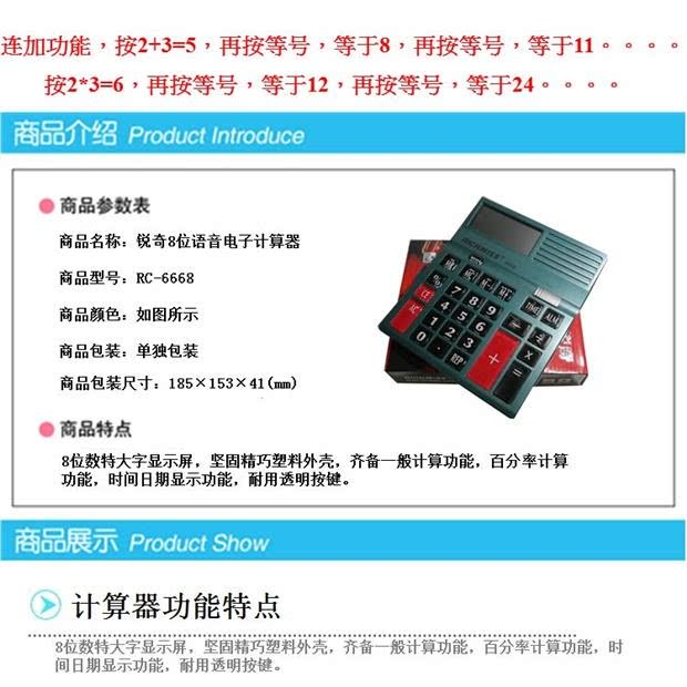 Richmiss Ruiqi RC-6668 Многофункциональная 8-битная голосовая электронная калькуляторная полоса Lianqian прозрачный ключ оптом