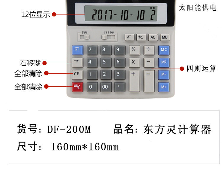 东方灵 Калькулятор DF-200M Офисный бухгалтерский бухгалтерский учет Финансирования Солнечный большой ключевой компьютерный калькулятор