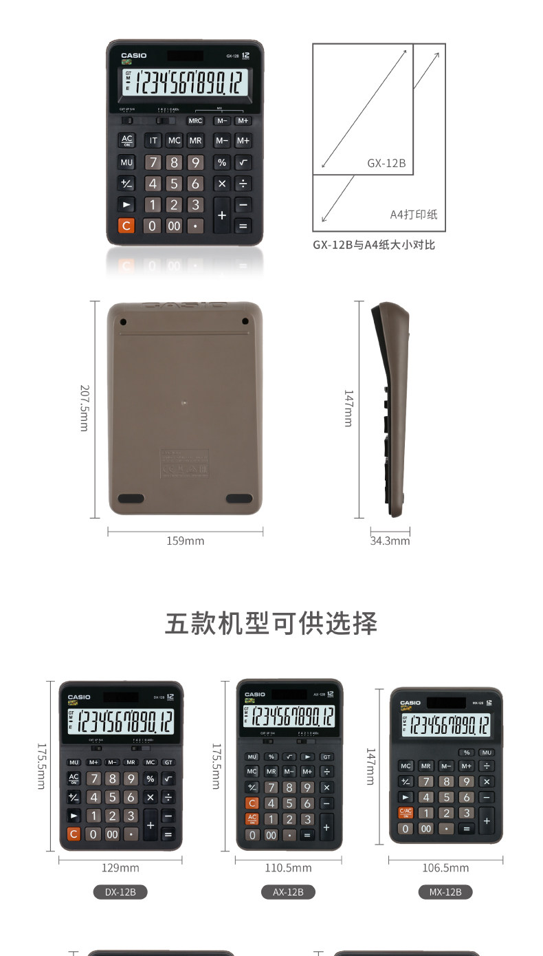 Casio/卡西欧 Компьютер GX-12B Большой калькулятор 12-значный офисные канцелярские товары поставляют студенческий супермаркет финансовый учет для бизнес-подарка Солнечная энергия
