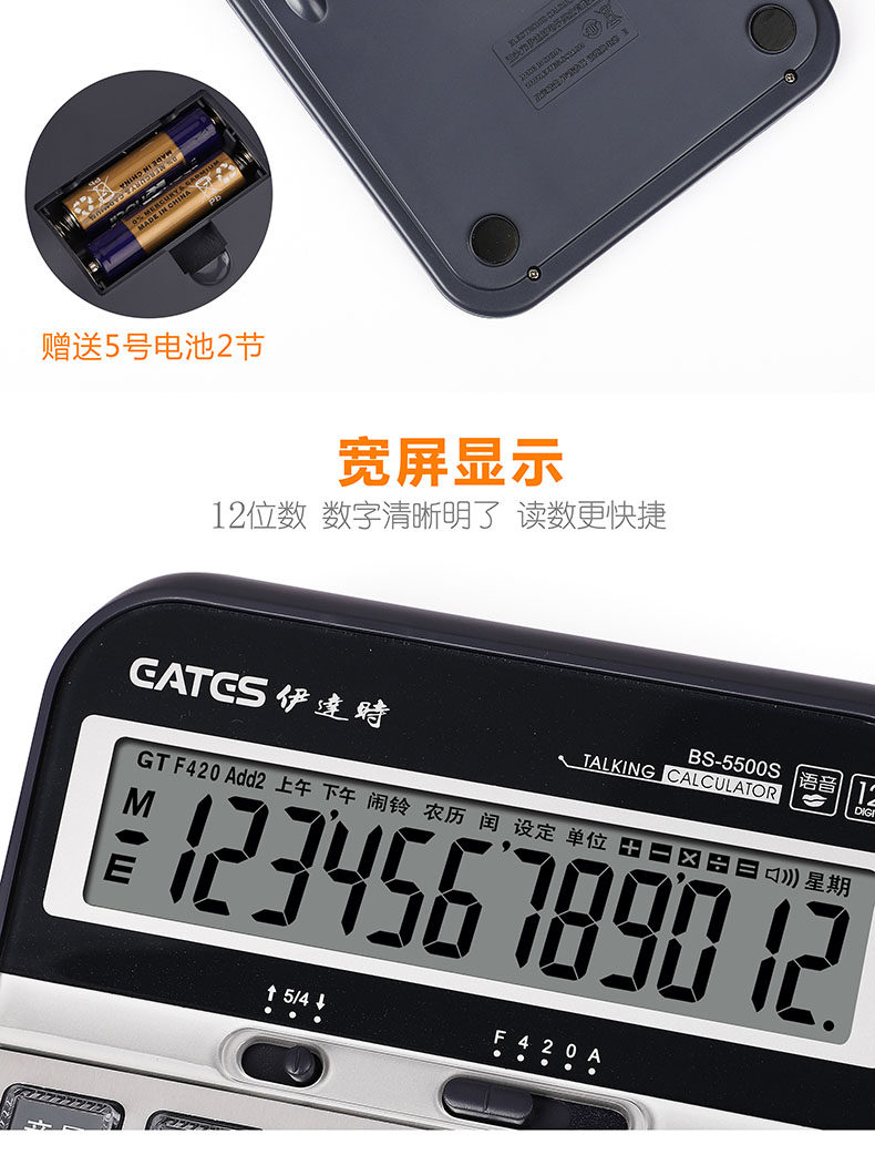 EATES/伊达时 12-битный голосовой калькулятор BS-5500-S Live Calendar Calendar Calendar Promptive с воспроизведением Music Electronic Priano Play функция