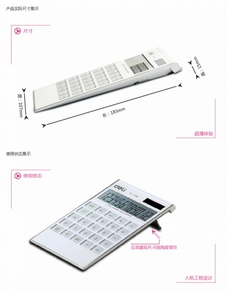 Deli Liquid Financial Calculator 12 Солнечные батареи Двойная мощность, ультра -тщательный прозрачный износ -резистентная кнопка Computer 1256