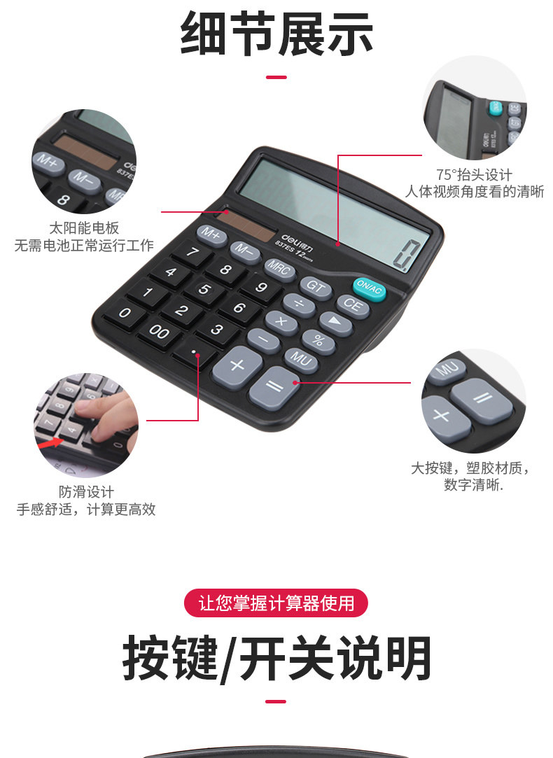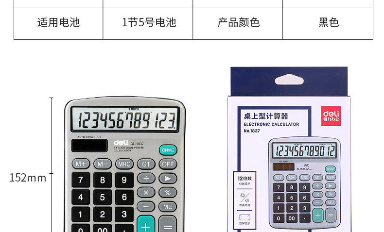 Deli -Power Calculator Solar Compult Office Financial Calculator Большая кнопка крупная экрана поставляет крупные компьютерные машины университет.